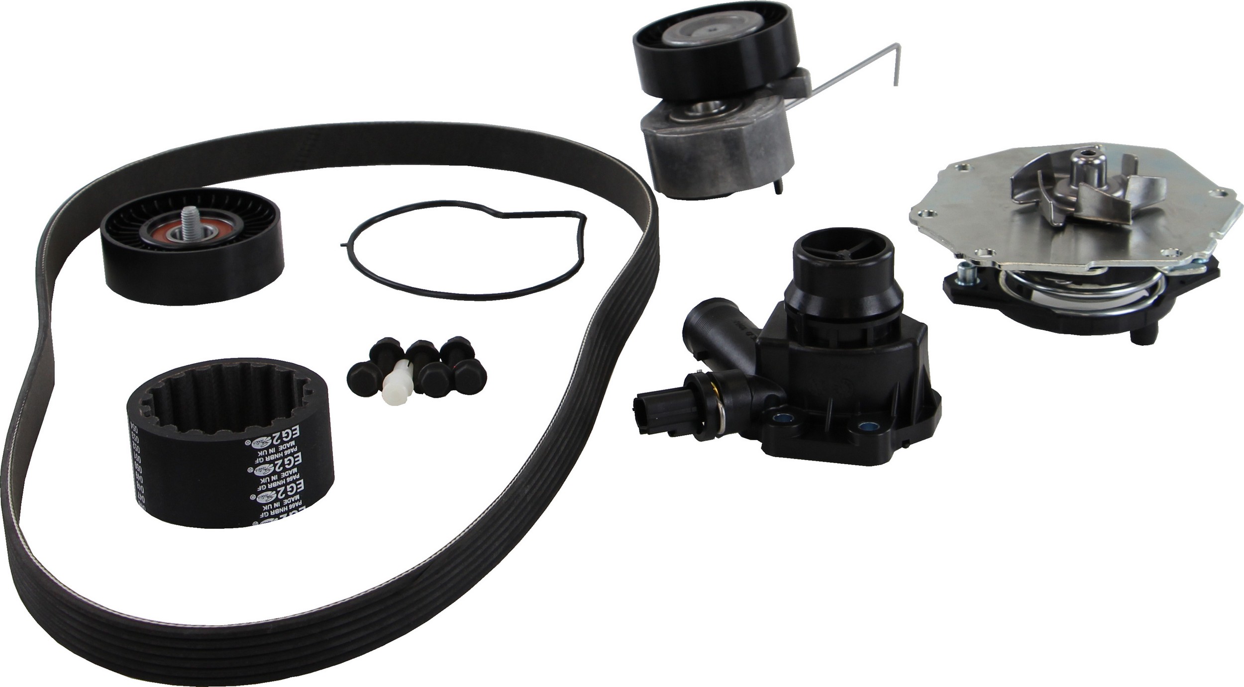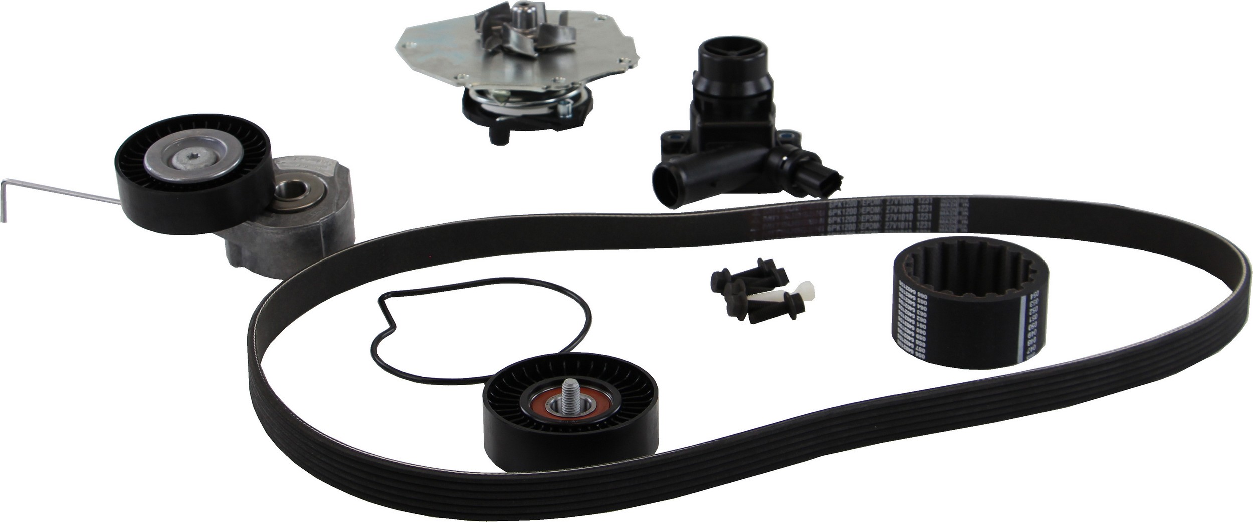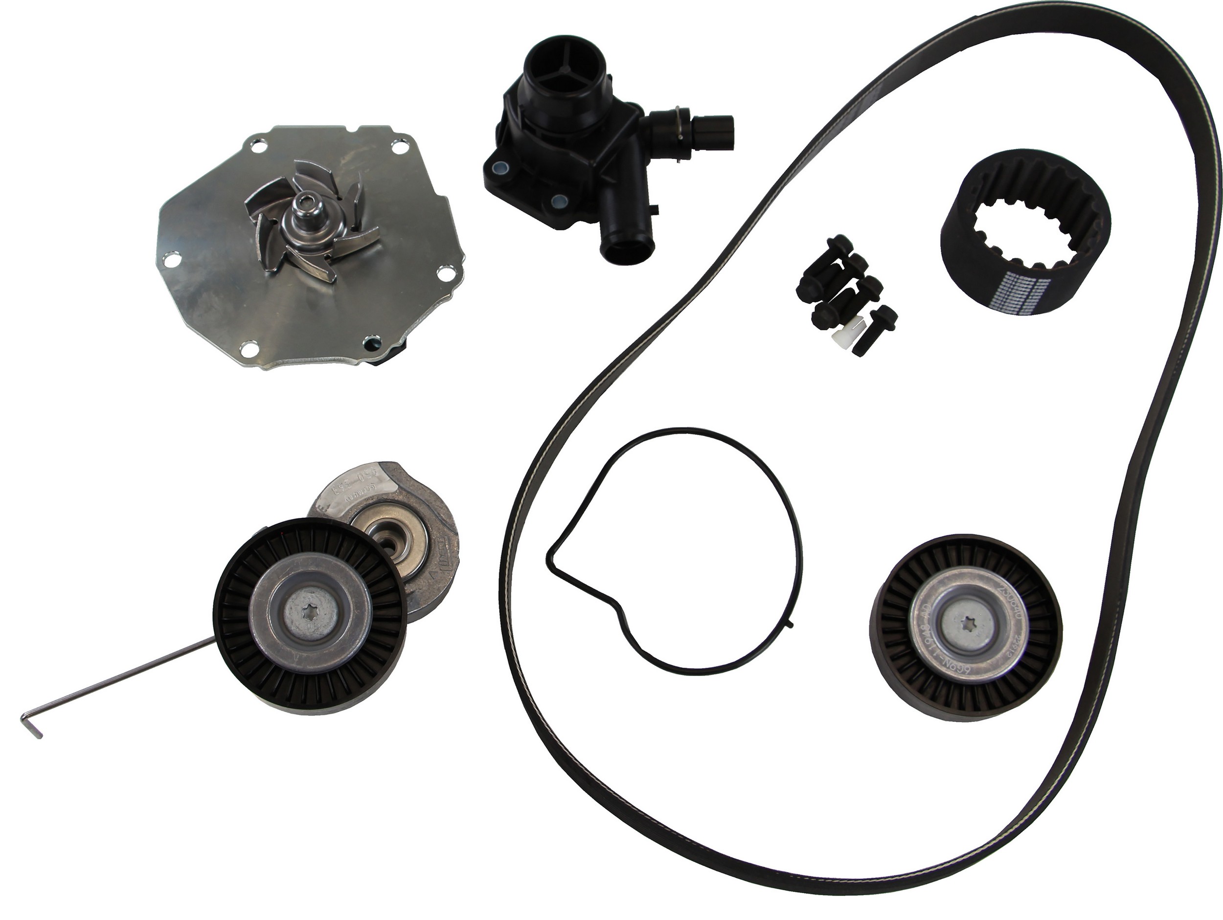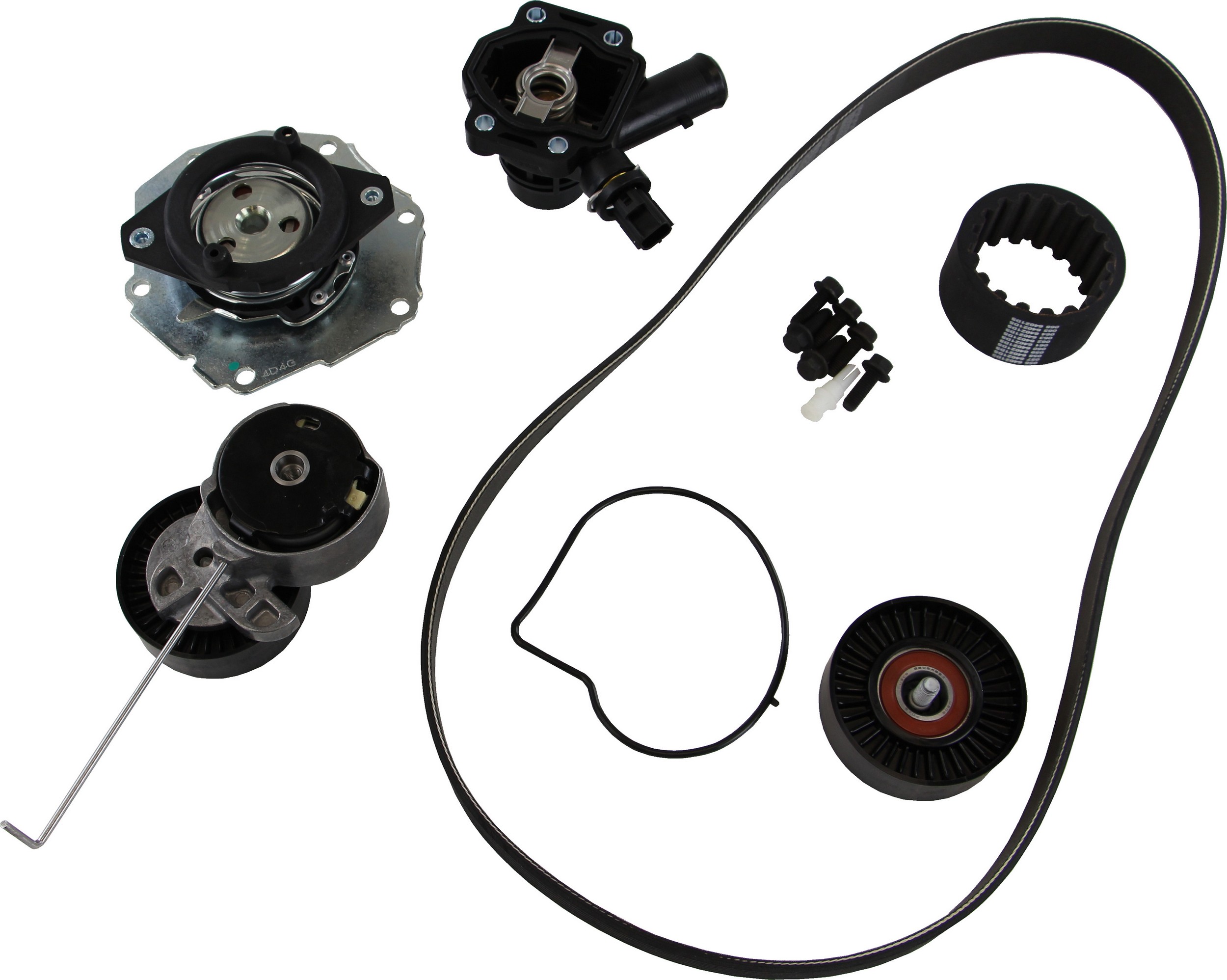 - Features OE impeller shaft bearing and OE steel water pump gasket, OE idlers, tensioners and accessory drive belt.
