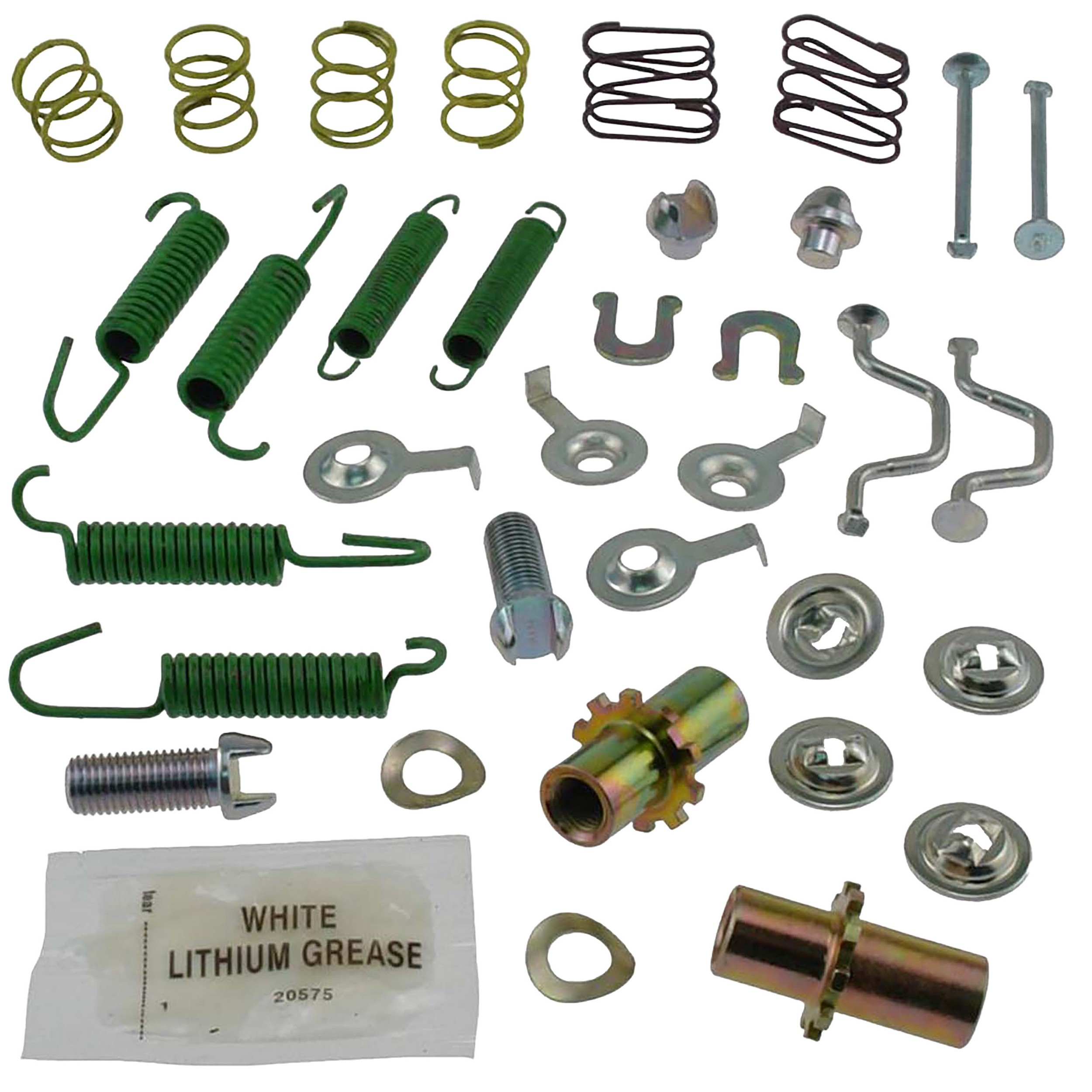 | Kit Contents | Spring hold down yellow (4), cup hold down (4), return spring (4), return spring (2), pin hold down (2), pin hold down (2), screw adj (2), nut adj (2), tip adj (2), washer c gold dichromate (2), spring compression oval (2), washer steel wave (2), cup hold down (4), grease packet lithium (1) |