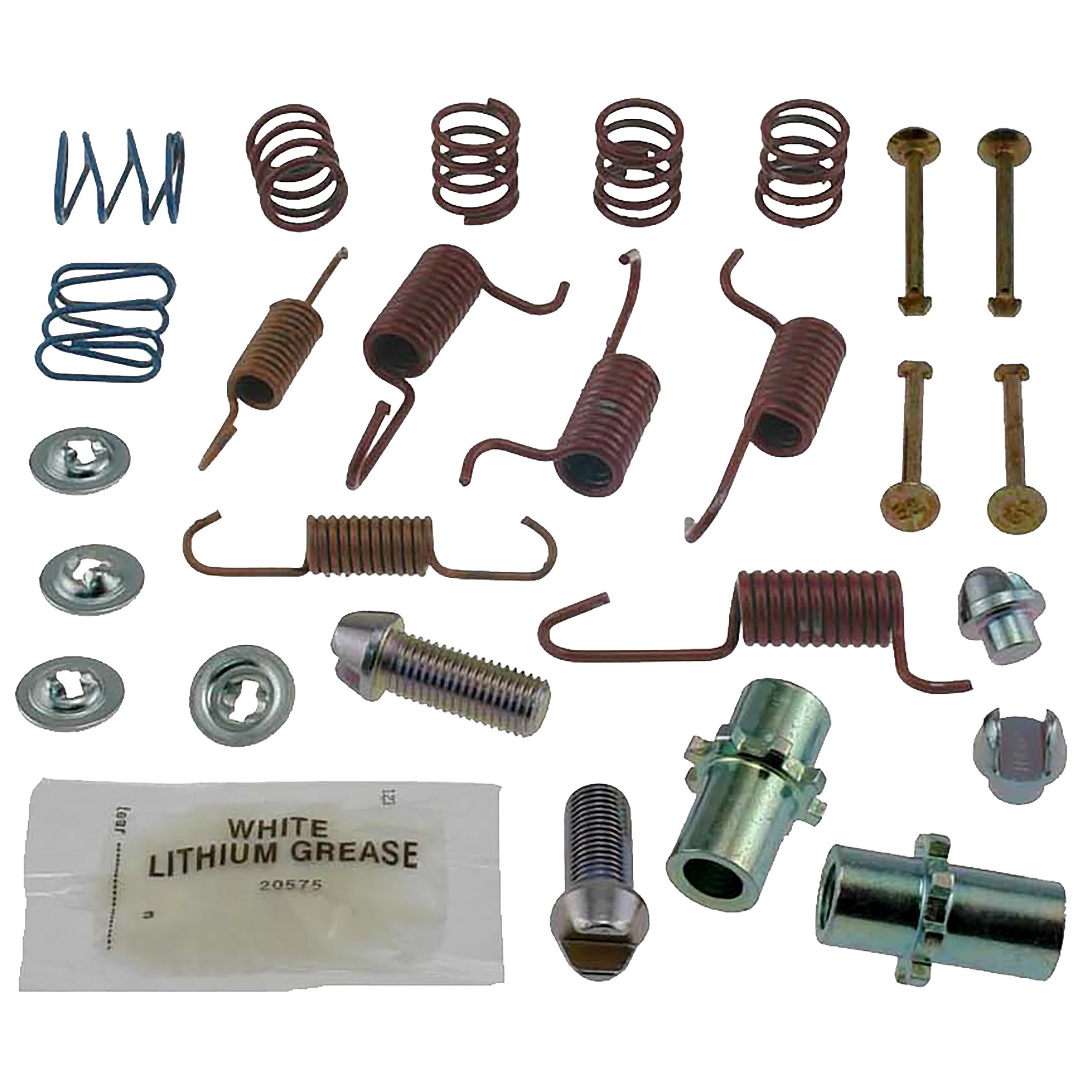 | Kit Contents | Return spring (4), return spring (2), spring hold down red (4), spring compression oval blue (2), pin hold down (4), cup hold down (4), screw adj (2), nut adj (2), tip adj (2), grease packet lithium (1) |