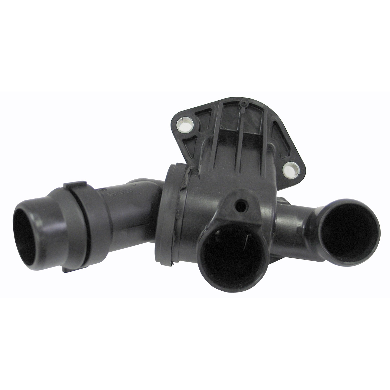 - Water outlet thermostat housing made of durable material for a long lasting life. Thermostat is integrated into housing assembly, simplifying installation.