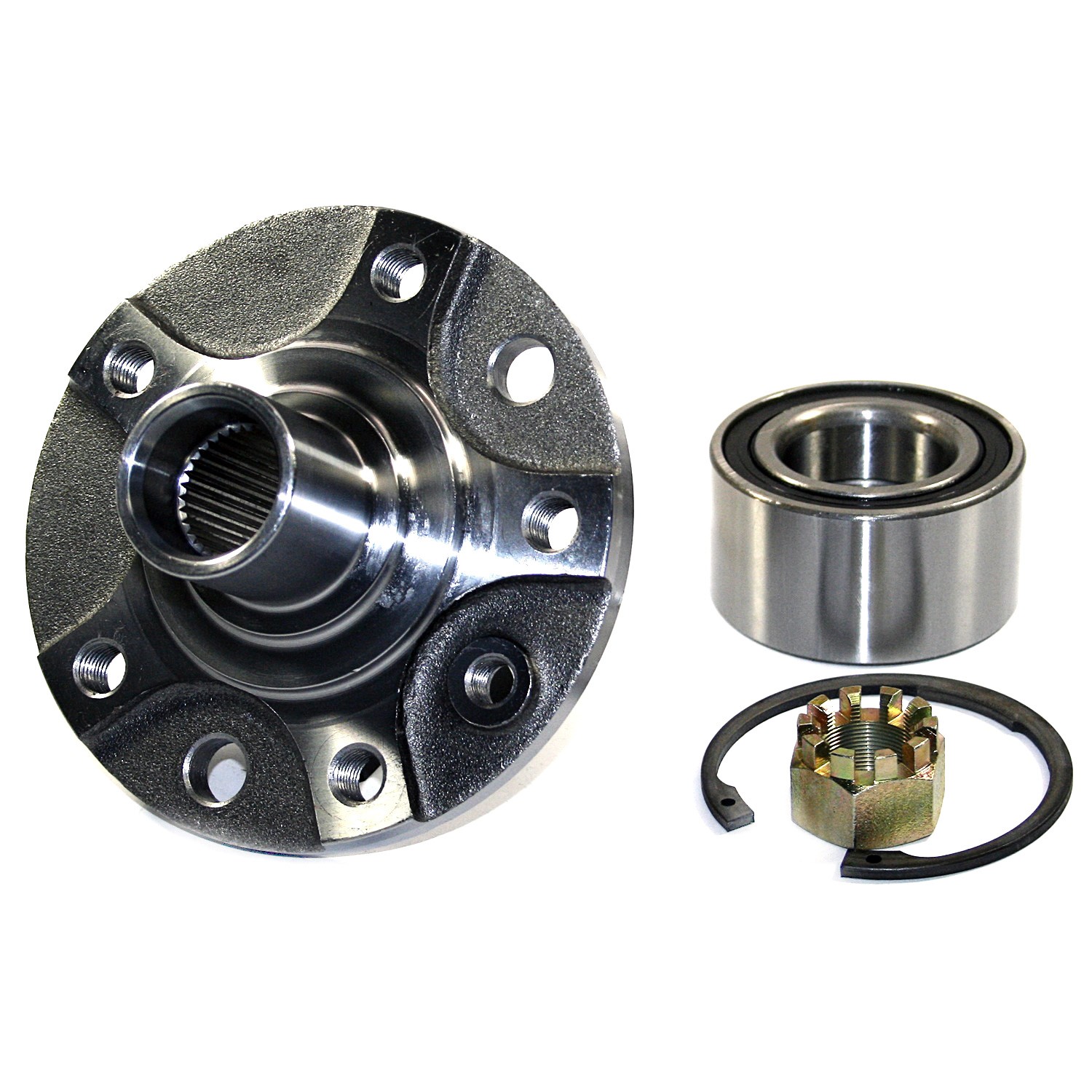 - Wheel Hub Repair Kits include all of the components required to restore the wheel hub and bearing to optimum condition. Kits include: New Wheel Hub, Wheel Bearing, (When applicable: Wheel Studs, Retaining Ring, Axle nut, Wheel Seal).