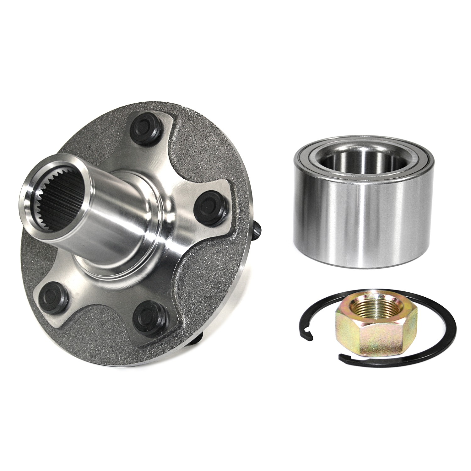 - Wheel Hub Repair Kits include all of the components required to restore the wheel hub and bearing to optimum condition. Kits include: New Wheel Hub, Wheel Bearing, (When applicable: Wheel Studs, Retaining Ring, Axle nut, Wheel Seal).