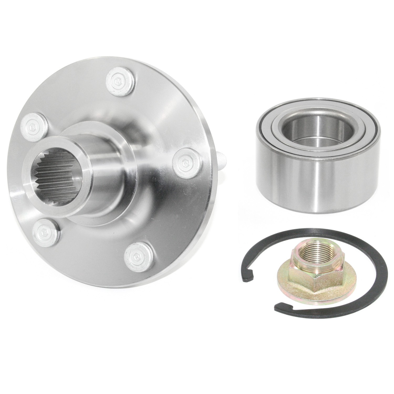 - Wheel Hub Repair Kits include all of the components required to restore the wheel hub and bearing to optimum condition. Kits include: New Wheel Hub, Wheel Bearing, (When applicable: Wheel Studs, Retaining Ring, Axle nut, Wheel Seal).