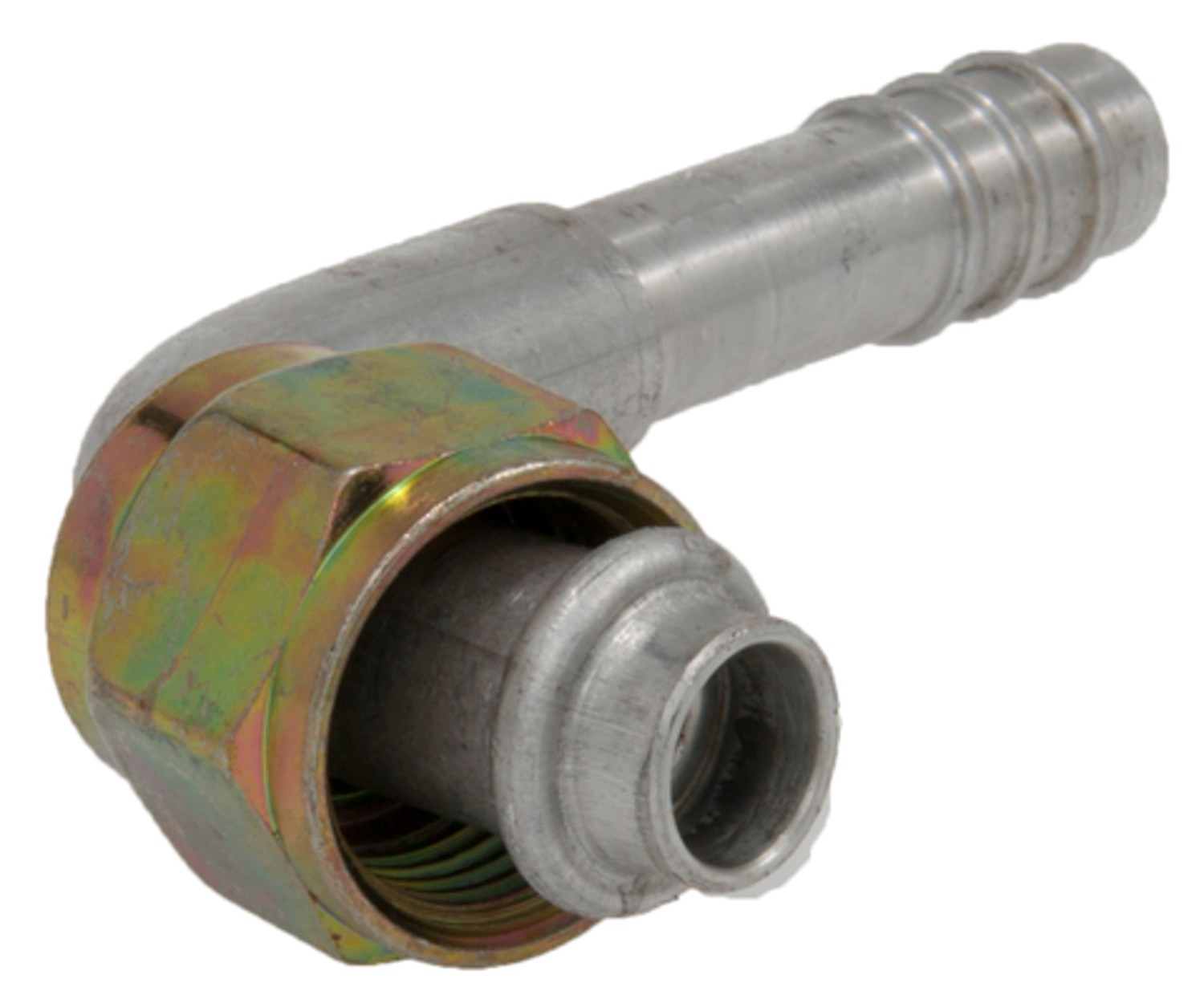 - 90 Degree Female O-Ring, Aluminum, Standard Diameter Barb and Clamp, A/C Fitting