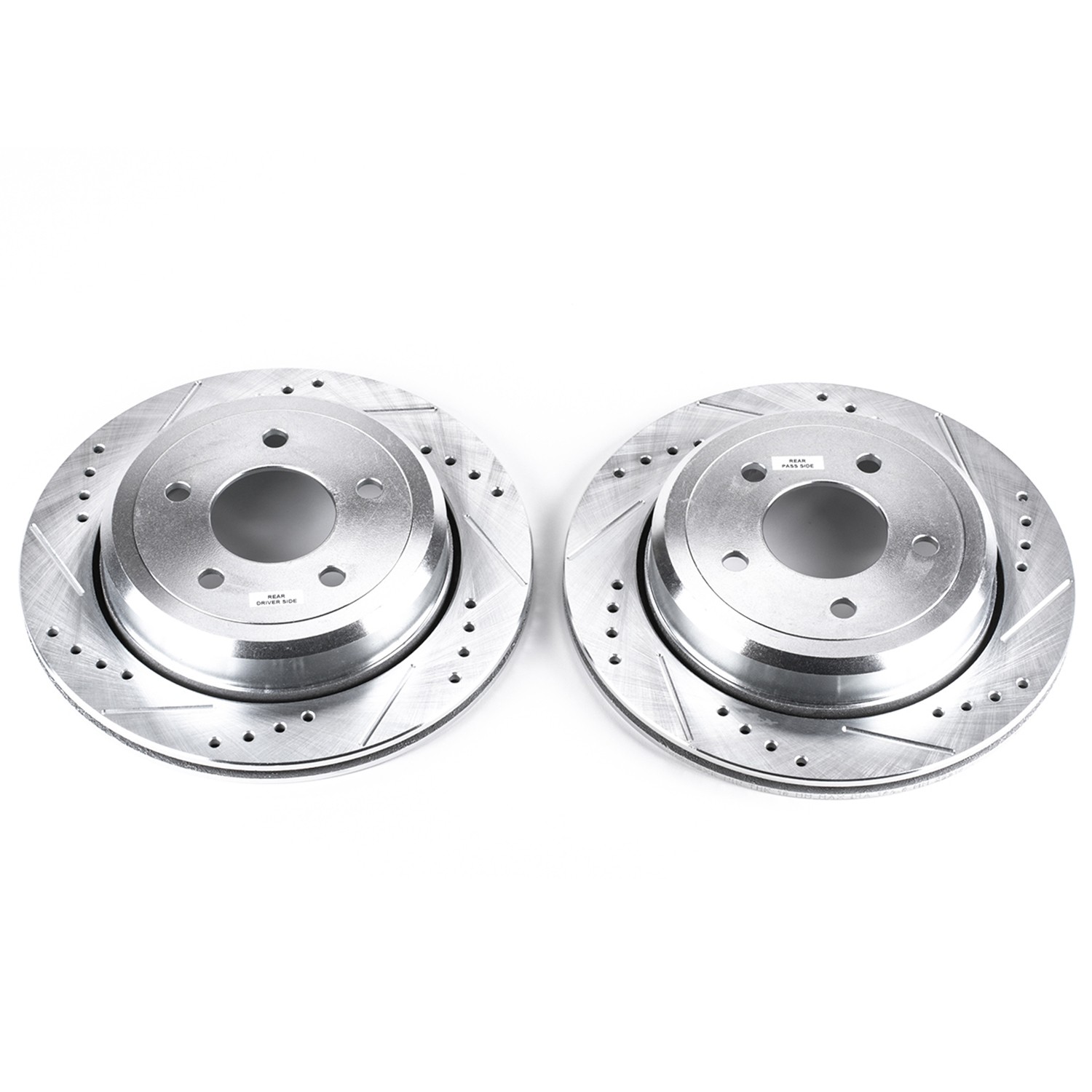 - Power Stop drilled and slotted rotors provide a bolt-on upgrade for improved brake cooling and performance. Precision cross-drilled for maximum cooling and maximum performance during extreme conditions; rounded slots sweep away gasses, dust, and moisture to keep a clean friction contact patch on the rotor surface. Silver zinc dichromate plating resists rust and corrosion. With a direct OE fit, there are no special modifications needed.