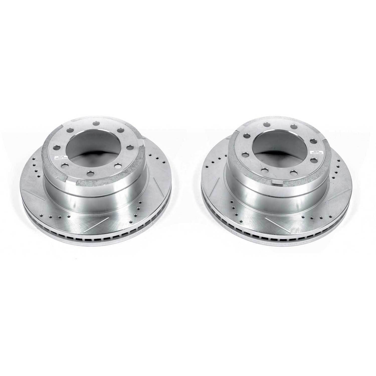 - Power Stop drilled and slotted rotors provide a bolt-on upgrade for improved brake cooling and performance. Precision cross-drilled for maximum cooling and maximum performance during extreme conditions; rounded slots sweep away gasses, dust, and moisture to keep a clean friction contact patch on the rotor surface. Silver zinc dichromate plating resists rust and corrosion. With a direct OE fit, there are no special modifications needed.