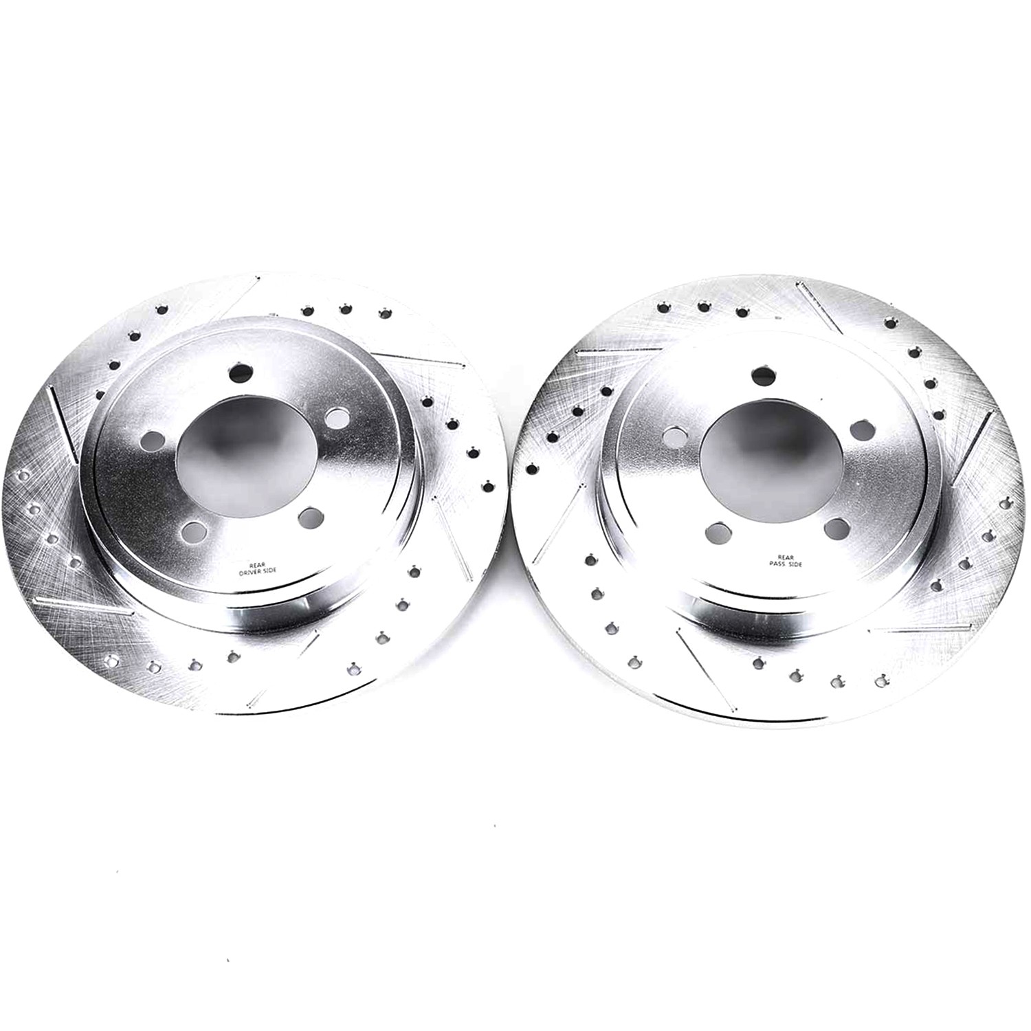 - Power Stop drilled and slotted rotors provide a bolt-on upgrade for improved brake cooling and performance. Precision cross-drilled for maximum cooling and maximum performance during extreme conditions; rounded slots sweep away gasses, dust, and moisture to keep a clean friction contact patch on the rotor surface. Silver zinc dichromate plating resists rust and corrosion. With a direct OE fit, there are no special modifications needed.