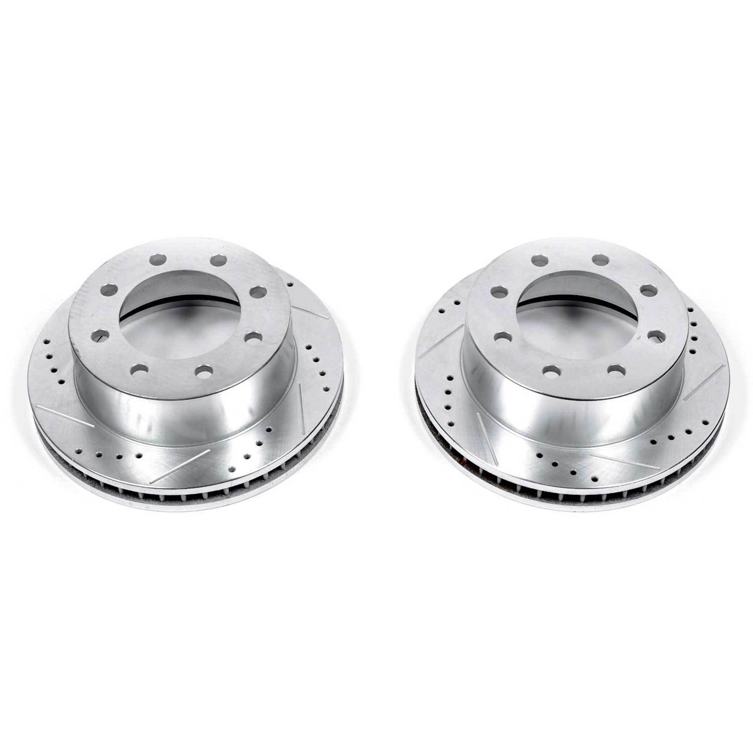 - Power Stop drilled and slotted rotors provide a bolt-on upgrade for improved brake cooling and performance. Precision cross-drilled for maximum cooling and maximum performance during extreme conditions; rounded slots sweep away gasses, dust, and moisture to keep a clean friction contact patch on the rotor surface. Silver zinc dichromate plating resists rust and corrosion. With a direct OE fit, there are no special modifications needed.