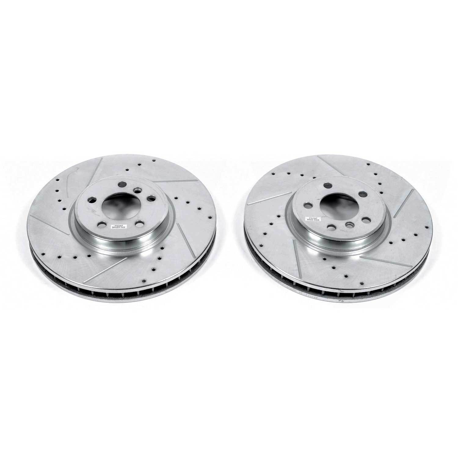 - Power Stop drilled and slotted rotors provide a bolt-on upgrade for improved brake cooling and performance. Precision cross-drilled for maximum cooling and maximum performance during extreme conditions; rounded slots sweep away gasses, dust, and moisture to keep a clean friction contact patch on the rotor surface. Silver zinc dichromate plating resists rust and corrosion. With a direct OE fit, there are no special modifications needed.