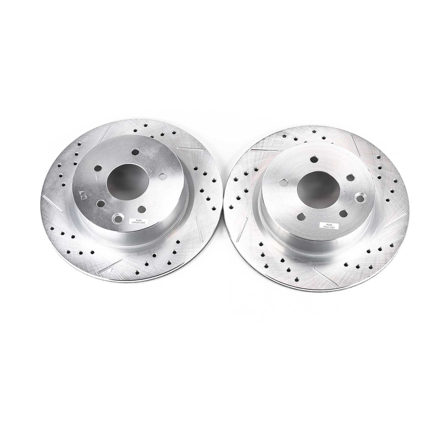 - Power Stop drilled and slotted rotors provide a bolt-on upgrade for improved brake cooling and performance. Precision cross-drilled for maximum cooling and maximum performance during extreme conditions; rounded slots sweep away gasses, dust, and moisture to keep a clean friction contact patch on the rotor surface. Silver zinc dichromate plating resists rust and corrosion. With a direct OE fit, there are no special modifications needed.