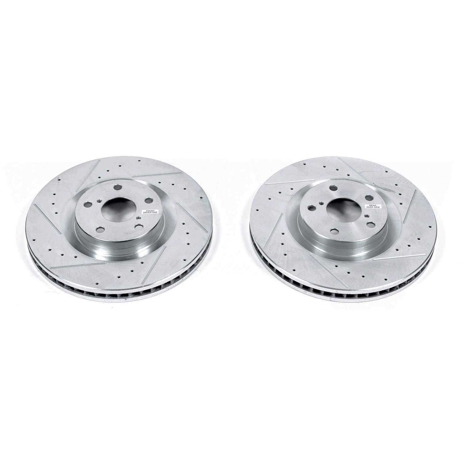 - Power Stop drilled and slotted rotors provide a bolt-on upgrade for improved brake cooling and performance. Precision cross-drilled for maximum cooling and maximum performance during extreme conditions; rounded slots sweep away gasses, dust, and moisture to keep a clean friction contact patch on the rotor surface. Silver zinc dichromate plating resists rust and corrosion. With a direct OE fit, there are no special modifications needed.