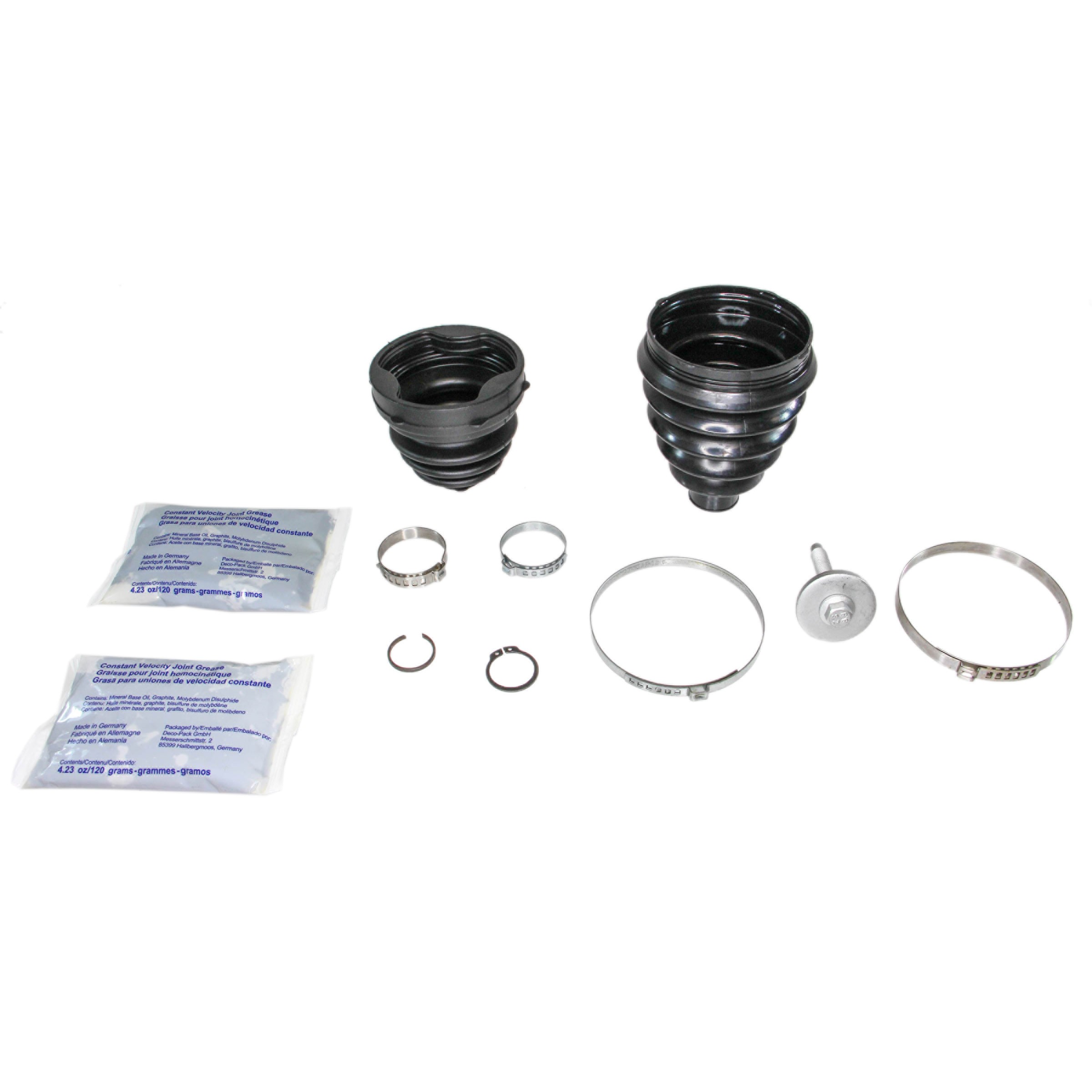 | Package Contents | Two cv boots, four clamps, two circlips, one bolt, two greases |