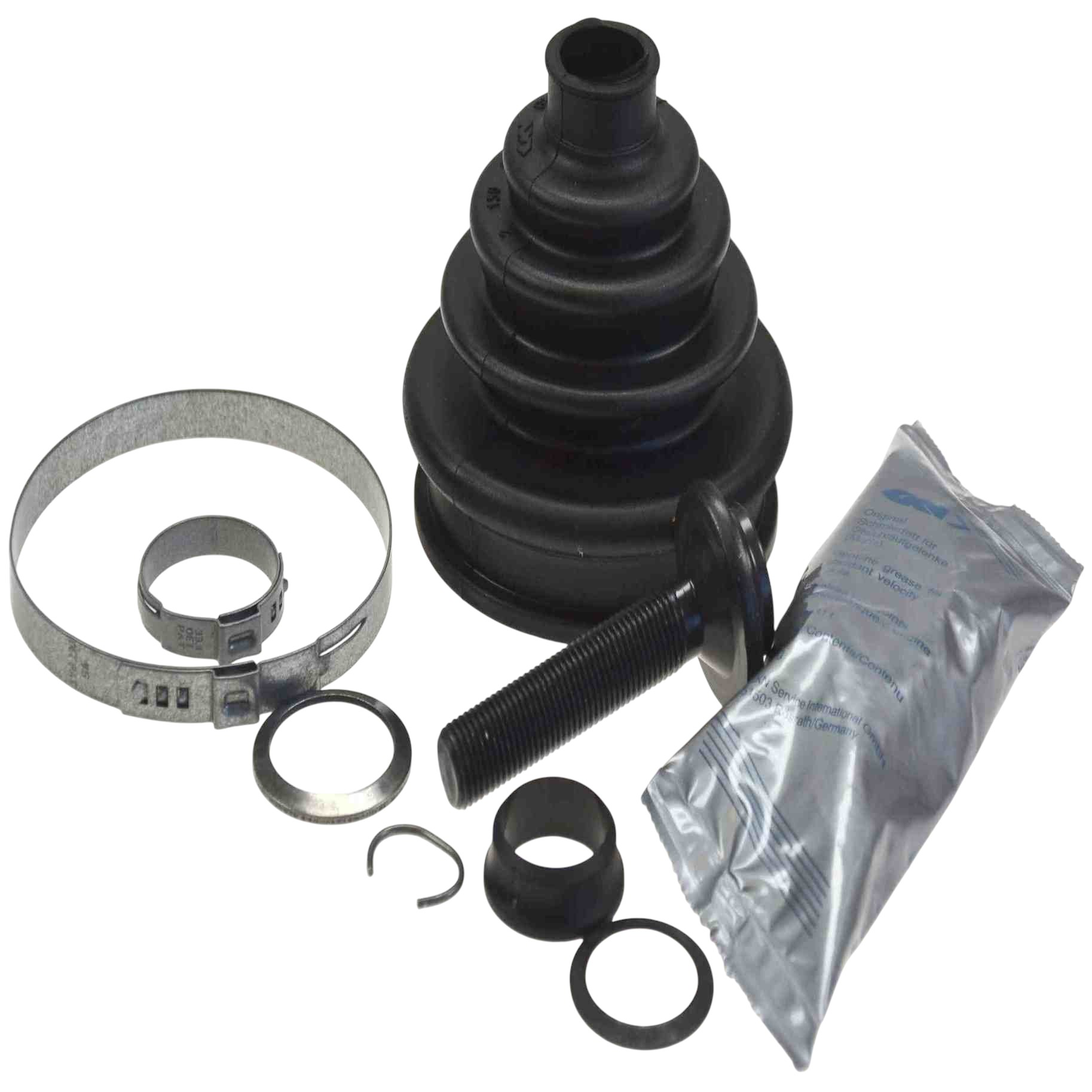 - Premium OE quality boot kits from the global leader in drive systems. The most frequent causes of joint failures include torn, slipped and porous boots. Therefore, in the case of damage be sure to pay attention to exact fit of the replacement boot. Boots that are specifically designed for the joint can protect reliably against damage. Please note: In addition to the fit, the right material is crucial. If the original driveshaft is fitted with a TPE boot always look for the matching replacement TPE boot kit from GKN Automotive. Our boot kits contain the individual parts needed for professional repairs: boot, circlips, tightening straps, bolts, nuts, spacers, etc.