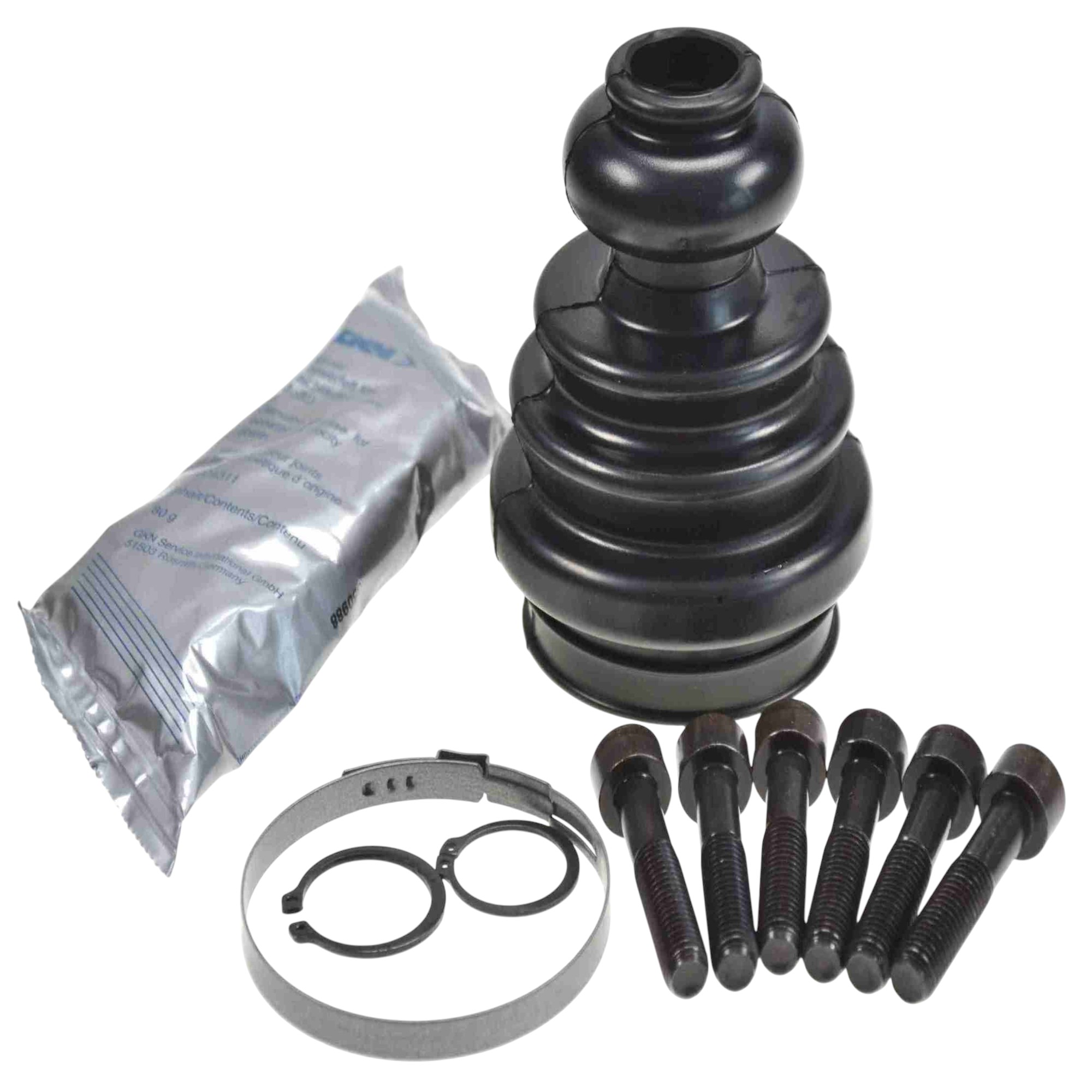 - Premium OE quality boot kits from the global leader in drive systems. The most frequent causes of joint failures include torn, slipped and porous boots. Therefore, in the case of damage be sure to pay attention to exact fit of the replacement boot. Boots that are specifically designed for the joint can protect reliably against damage. Please note: In addition to the fit, the right material is crucial. If the original driveshaft is fitted with a TPE boot always look for the matching replacement TPE boot kit from GKN Automotive. Our boot kits contain the individual parts needed for professional repairs: boot, circlips, tightening straps, bolts, nuts, spacers, etc.