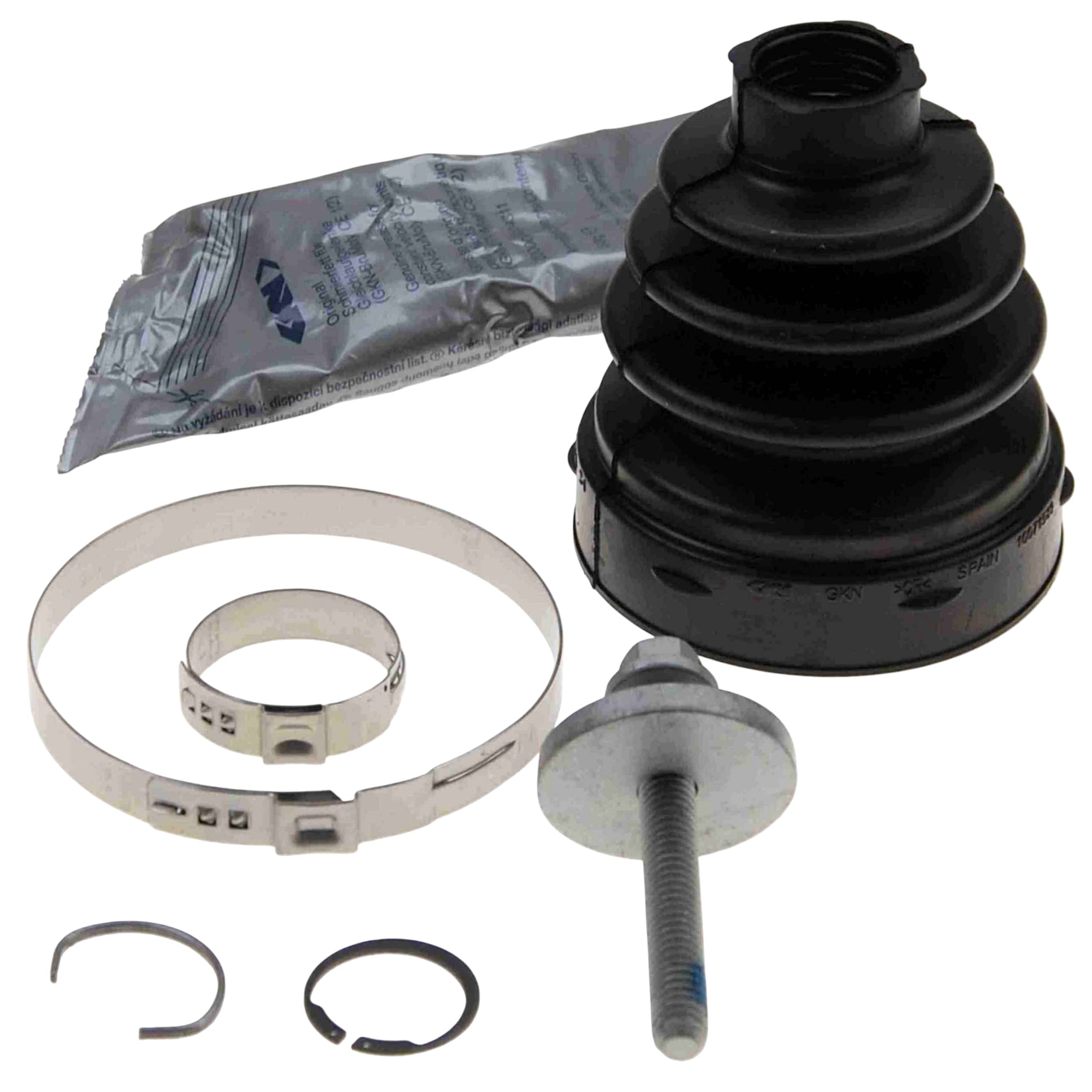 - Premium OE quality boot kits from the global leader in drive systems. The most frequent causes of joint failures include torn, slipped and porous boots. Therefore, in the case of damage be sure to pay attention to exact fit of the replacement boot. Boots that are specifically designed for the joint can protect reliably against damage. Please note: In addition to the fit, the right material is crucial. If the original driveshaft is fitted with a TPE boot always look for the matching replacement TPE boot kit from GKN Automotive. Our boot kits contain the individual parts needed for professional repairs: boot, circlips, tightening straps, bolts, nuts, spacers, etc.