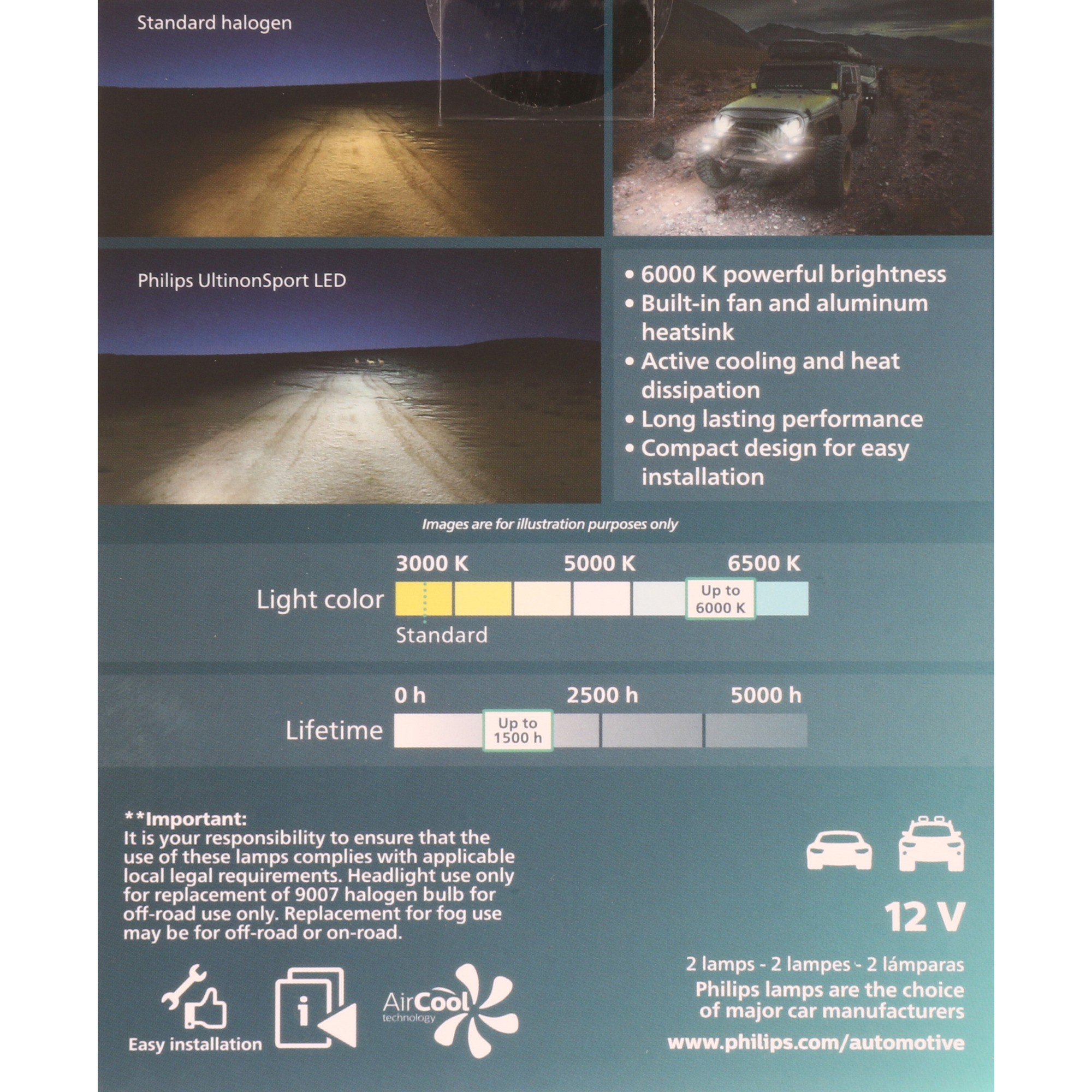 - Discover your next adventure with Philips UltinonSport LED for Fog and Powersports. They are the perfect upgrades from halogen to LED technology, offering a durable, long-lasting performance and a powerful, cool white light of up to 6000 K color temperature.