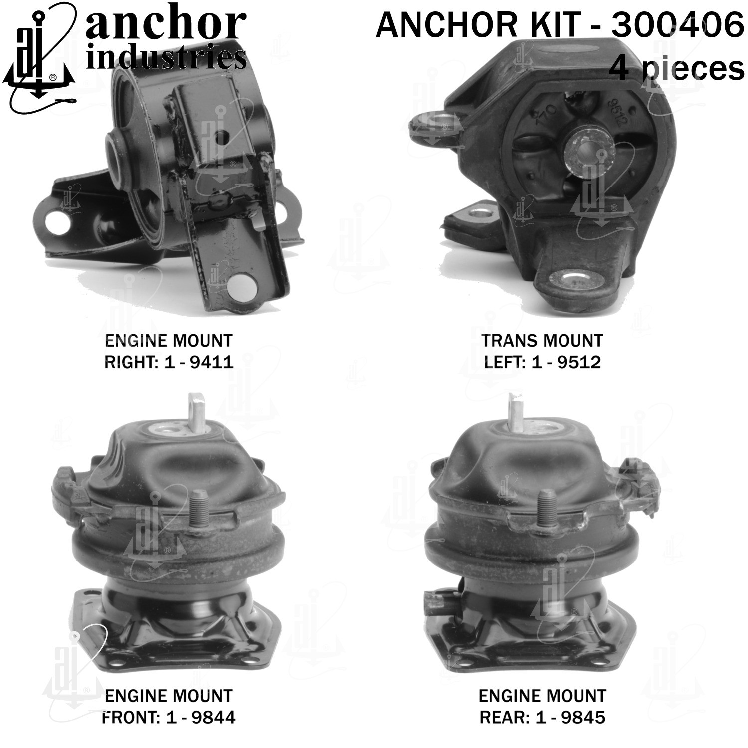 | KIT | 1-9844 engine mount front / 1-9845 engine mount rear / 1-9411 engine mount right / 1-9512 trans mount left |