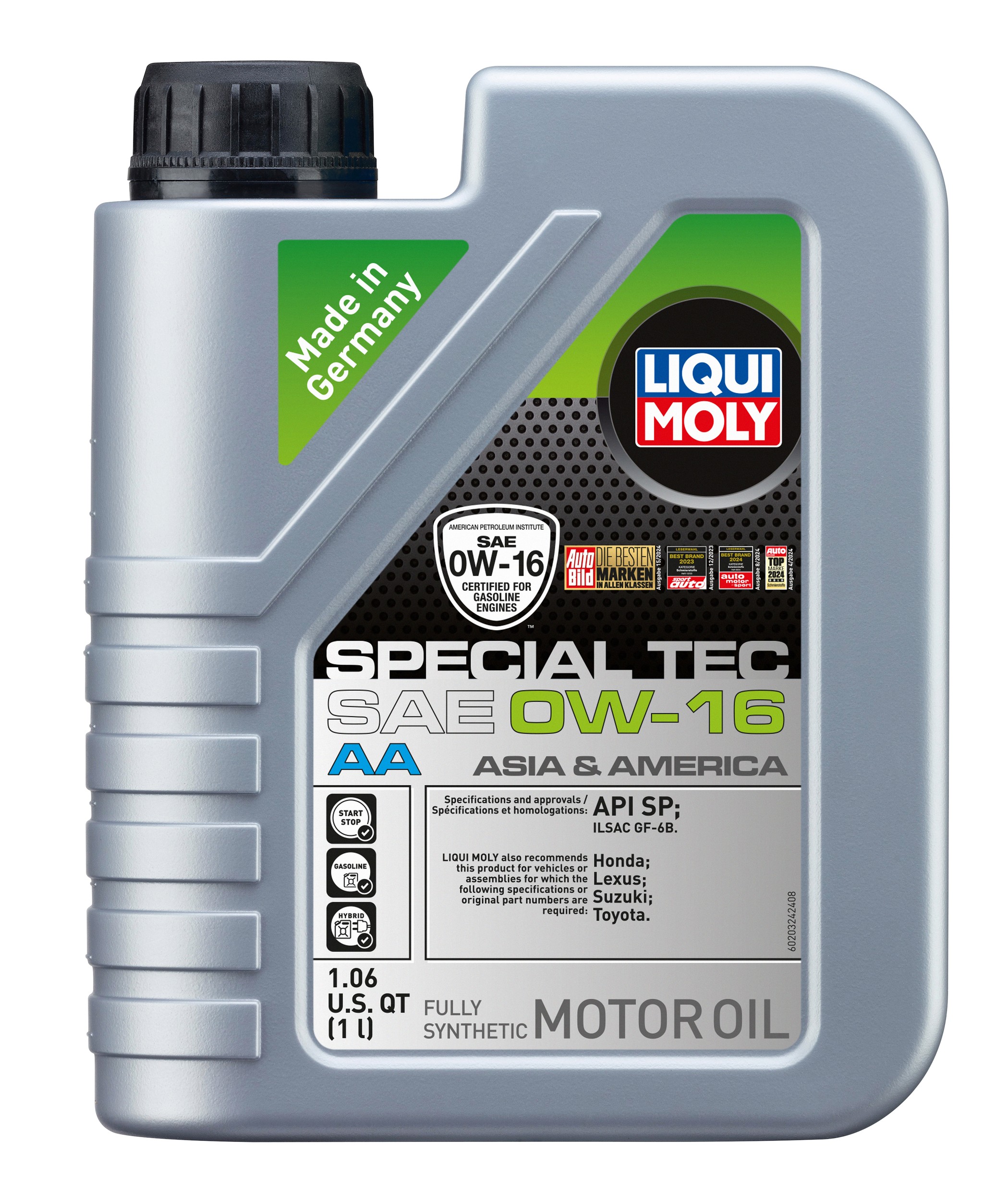 - Fully synthetic premium class motor oil with extremely low viscosity, developed specifically to meet the high demands of modern Asian and American gasoline engines. Cutting edge additive technology guarantees best wear protection and engine cleanliness, lowest oil and fuel consumption and highest engine efficiency. Ideally suited for engines with direct injection (GDI) and turbochargers. Use with extended oil change intervals as per manufacturer.