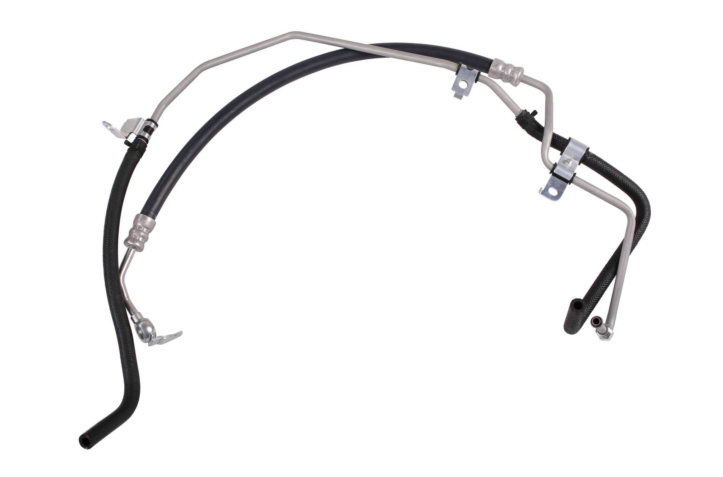- The Pressure and Return Hoses are pre-assembled with brackets, providing easy installation and reduced labor time compared to replacement versions sold as individual hoses.
