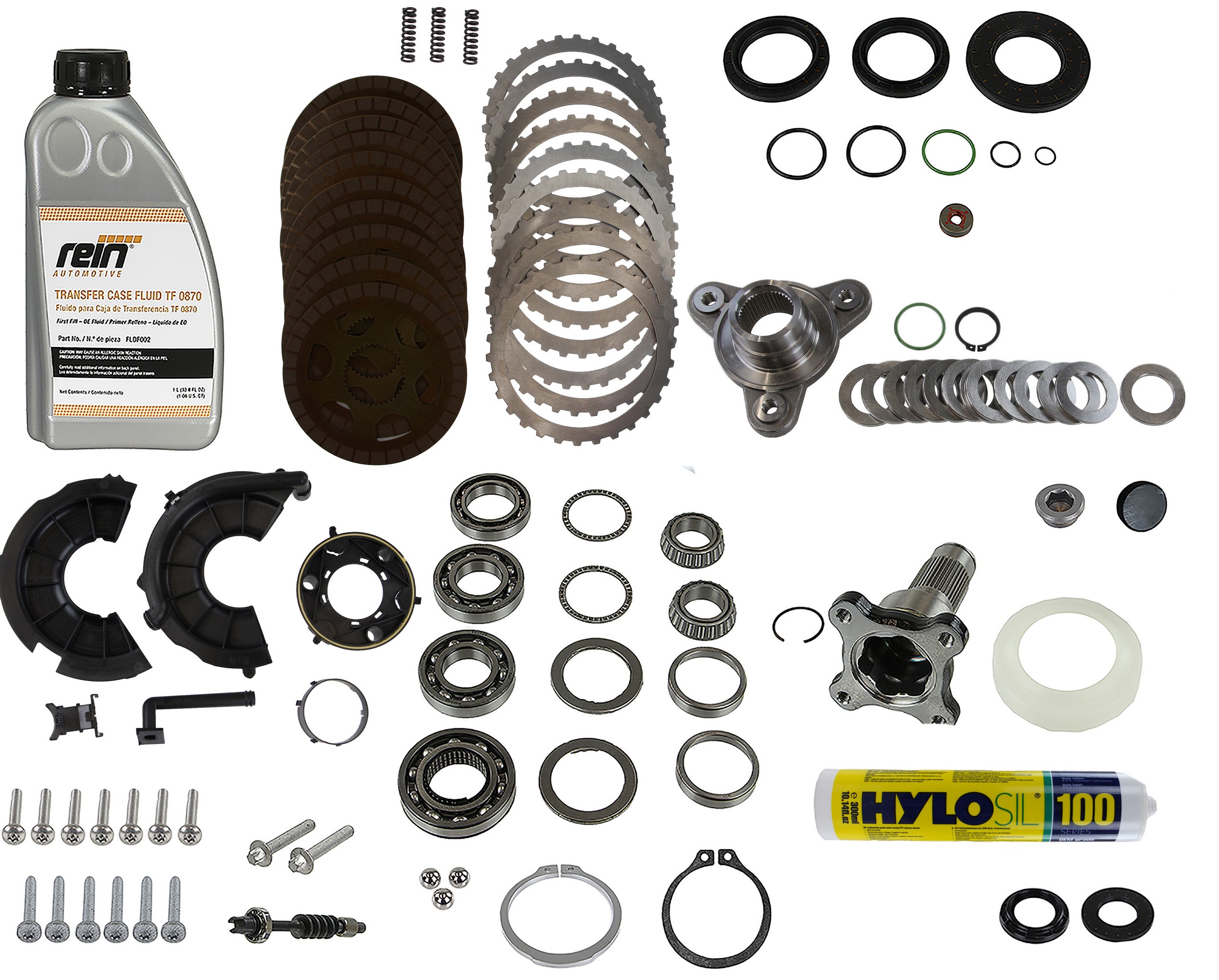 - Rein OE Transfer Case Overhaul Kit includes all OE components to perform a complete overhaul of the transfer case. The kit is comprised of bearings, clutch packs, shims, magnets, hardware, seals, and other necessary internal components.