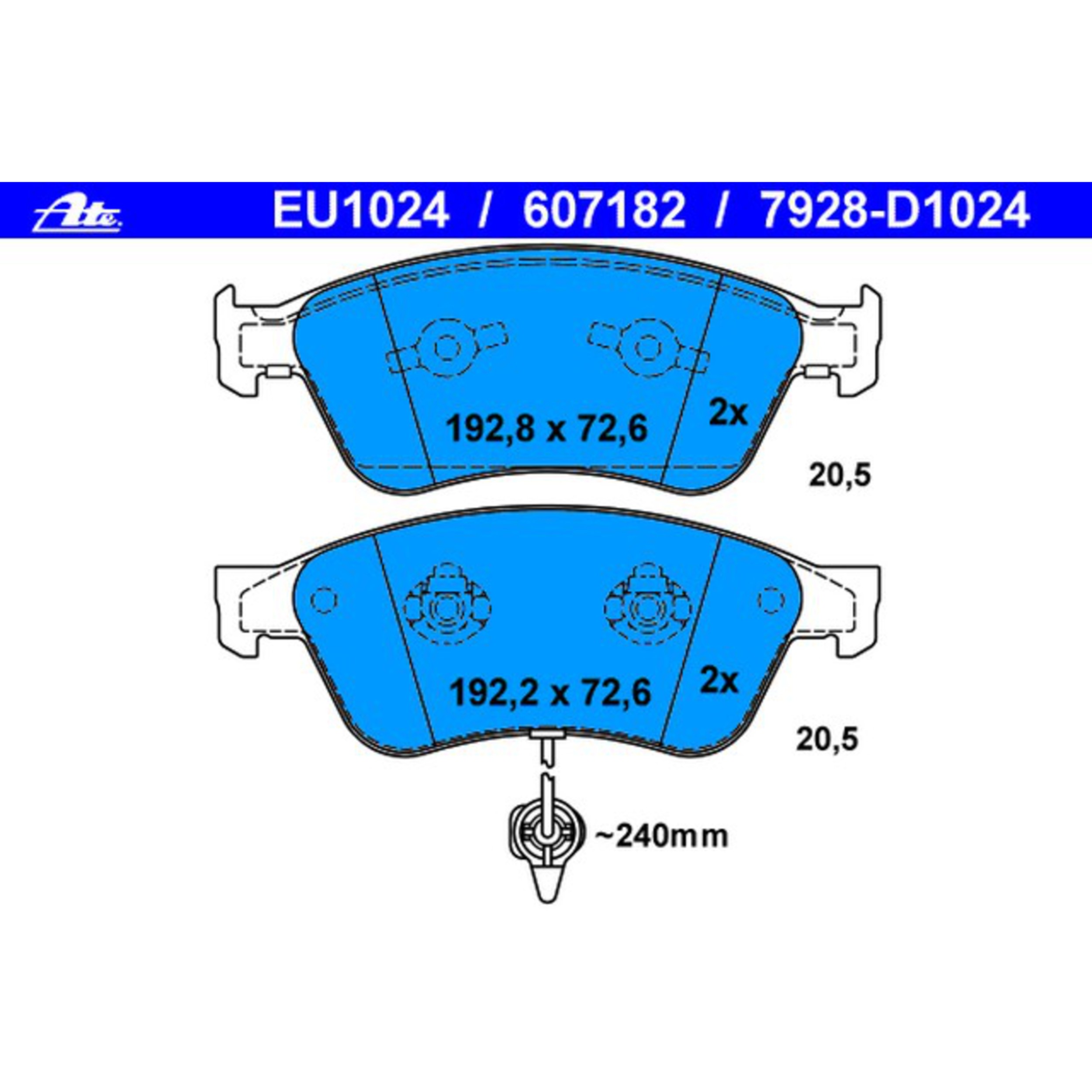 ATE Coated® 607182 Disc Brake Pad Set