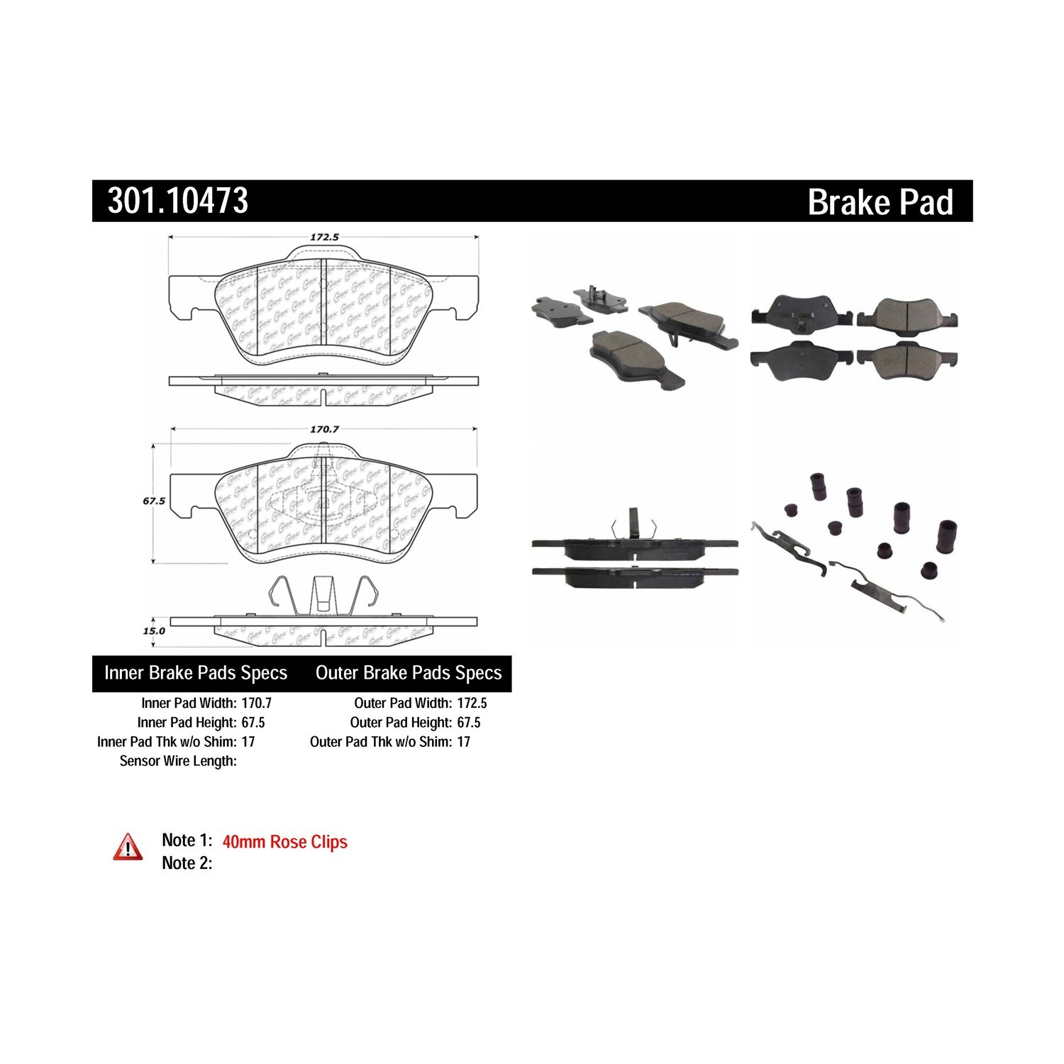 - Centric Premium Ceramic Pads with Shims and Hardware
