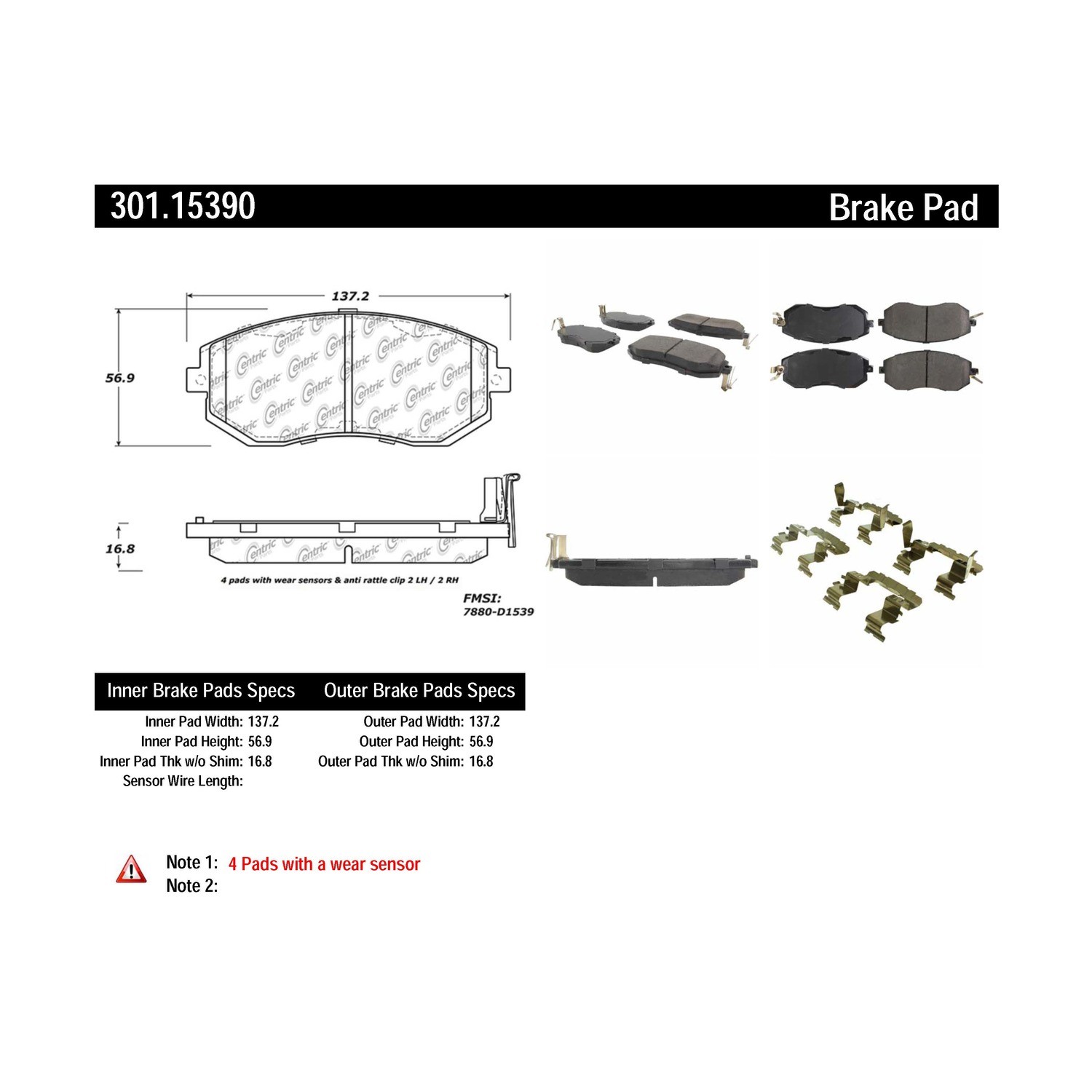 - Centric Premium Ceramic Pads with Shims and Hardware