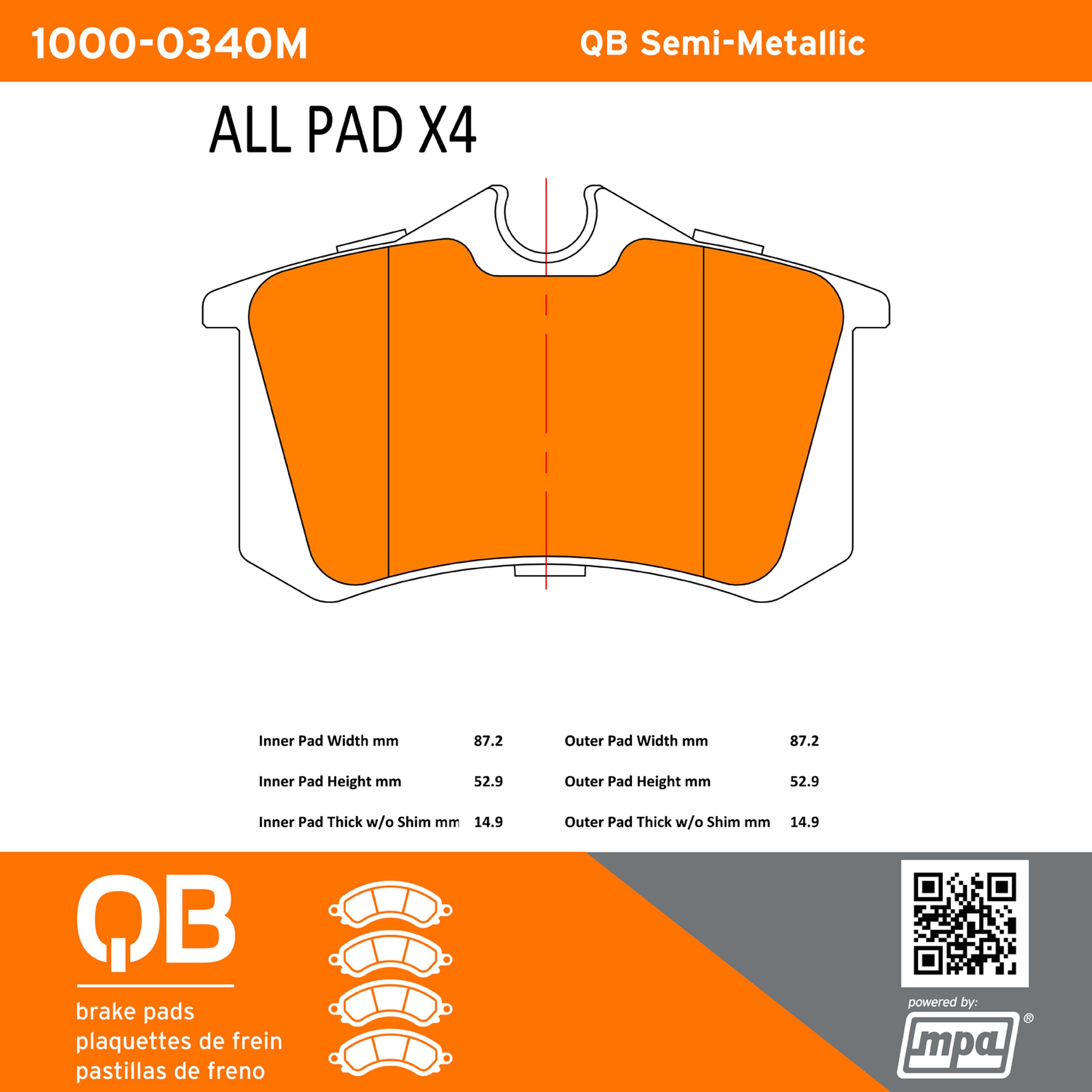 - QB Semi-Metallic Brake Pads