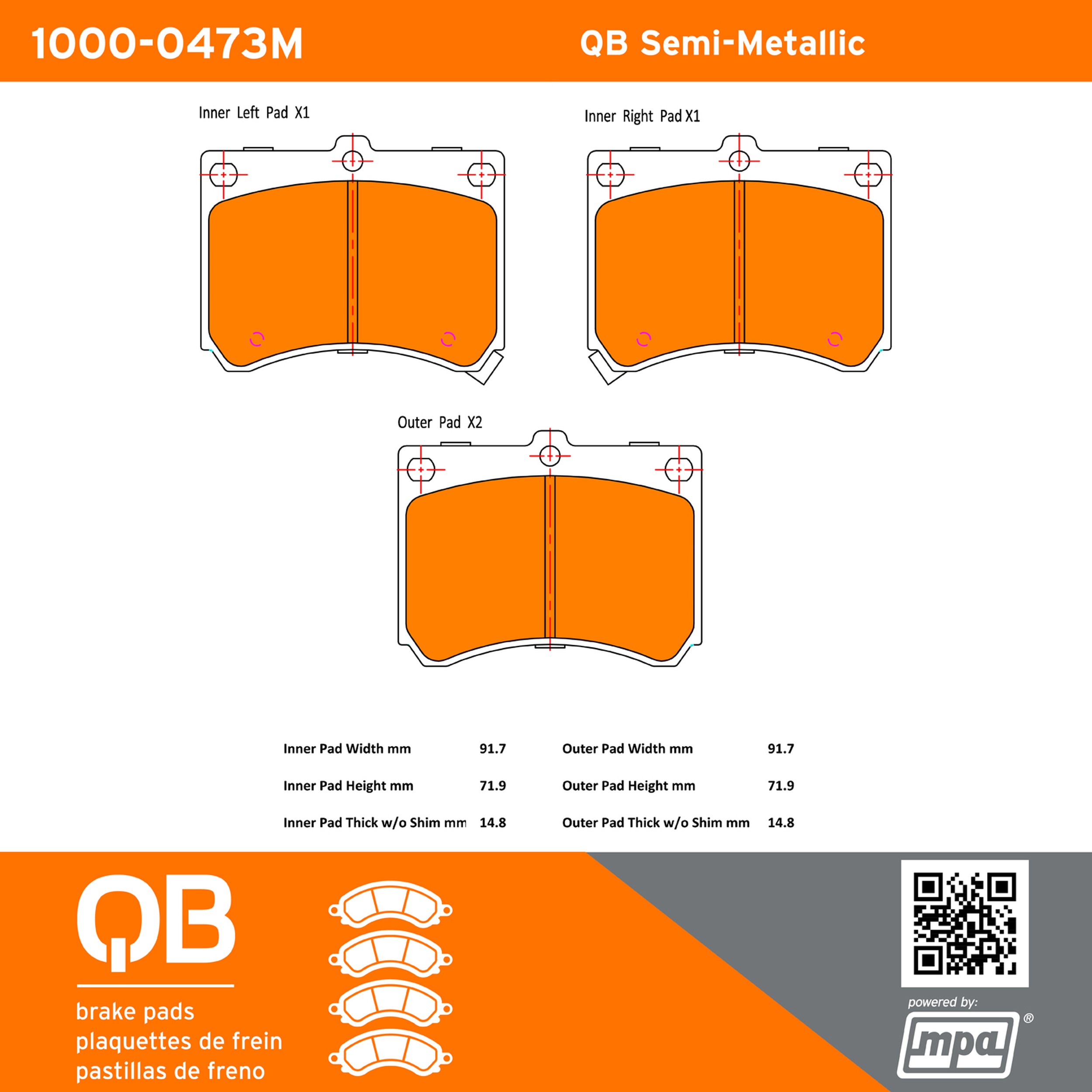 - QB Semi-Metallic Brake Pads