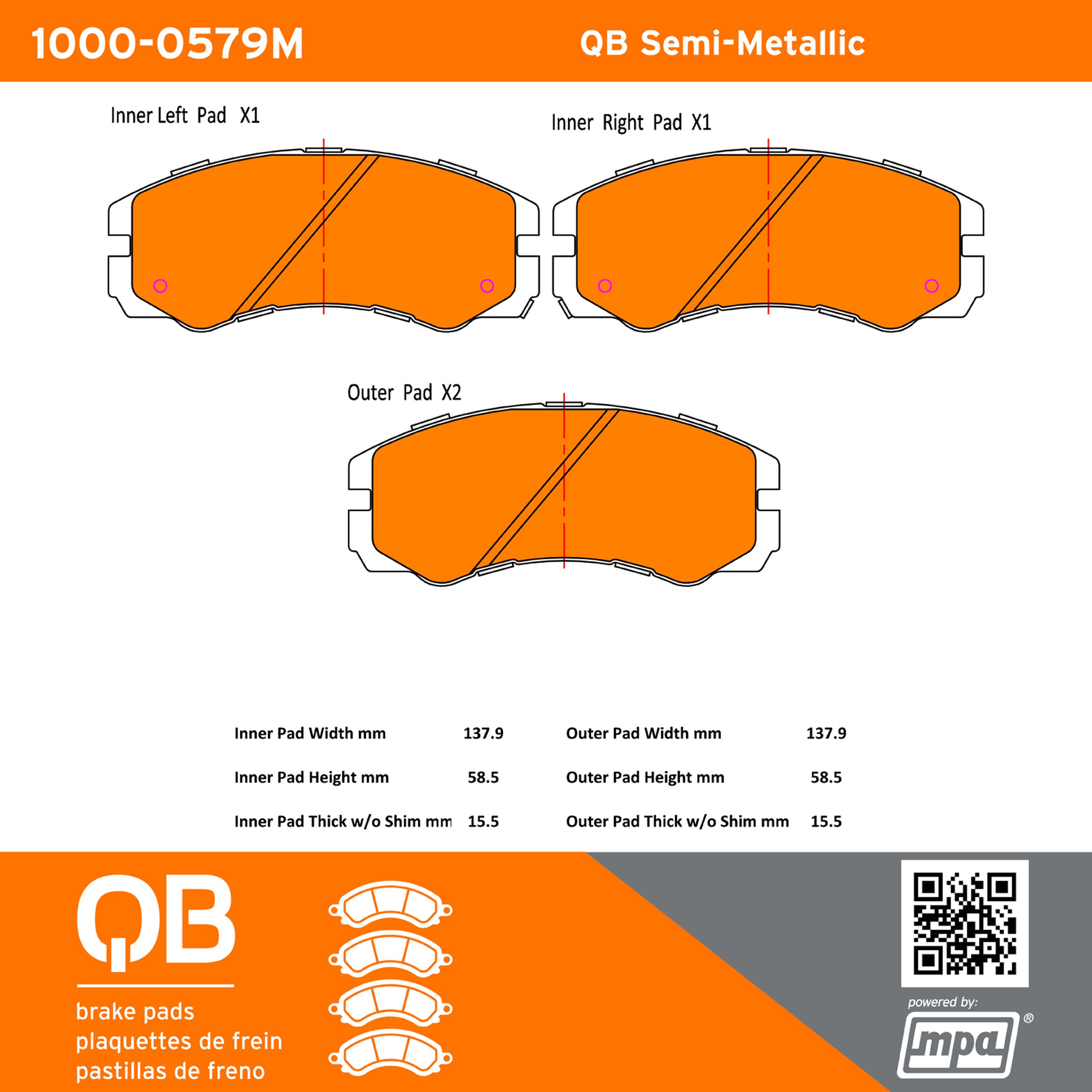 - QB Semi-Metallic Brake Pads