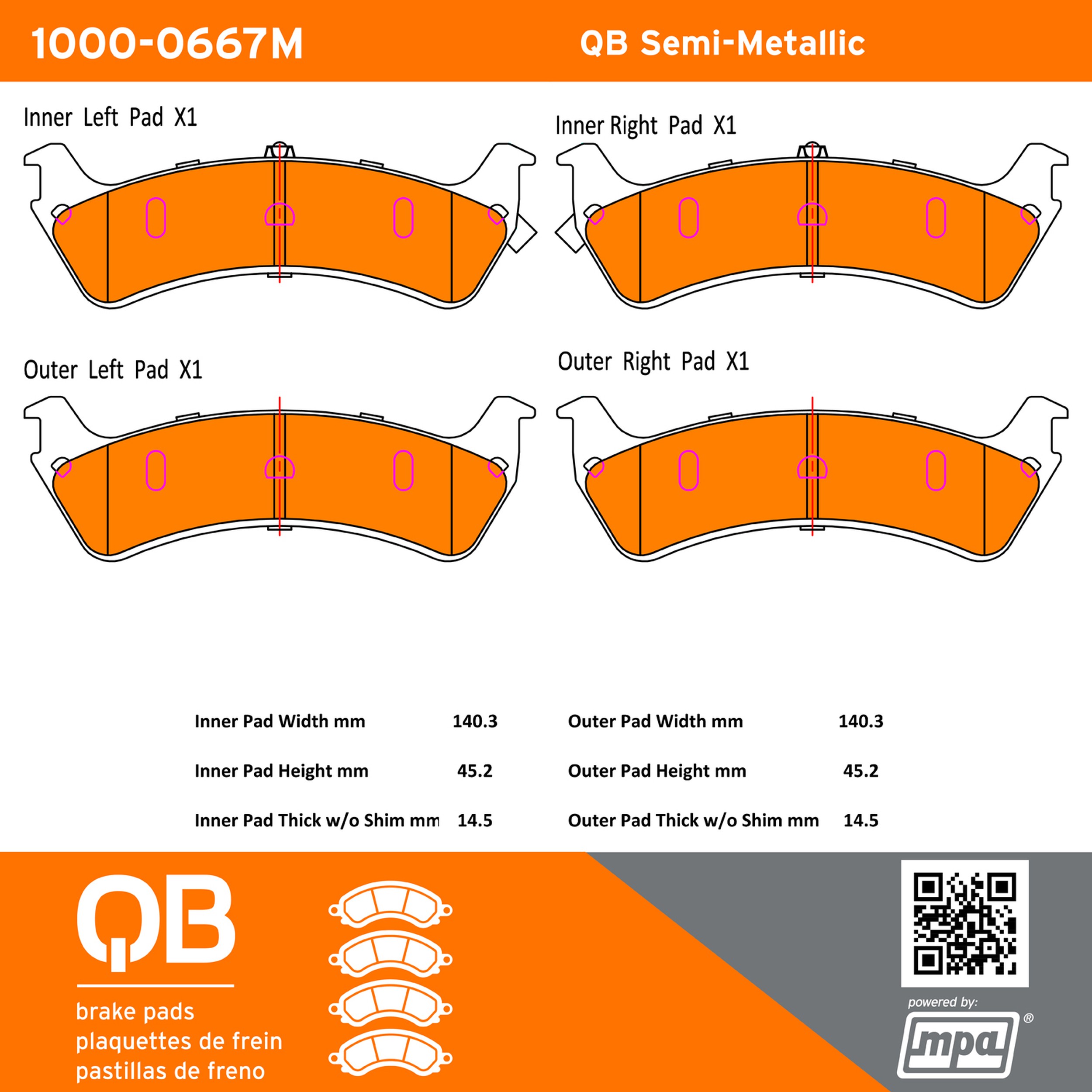 - QB Semi-Metallic Brake Pads