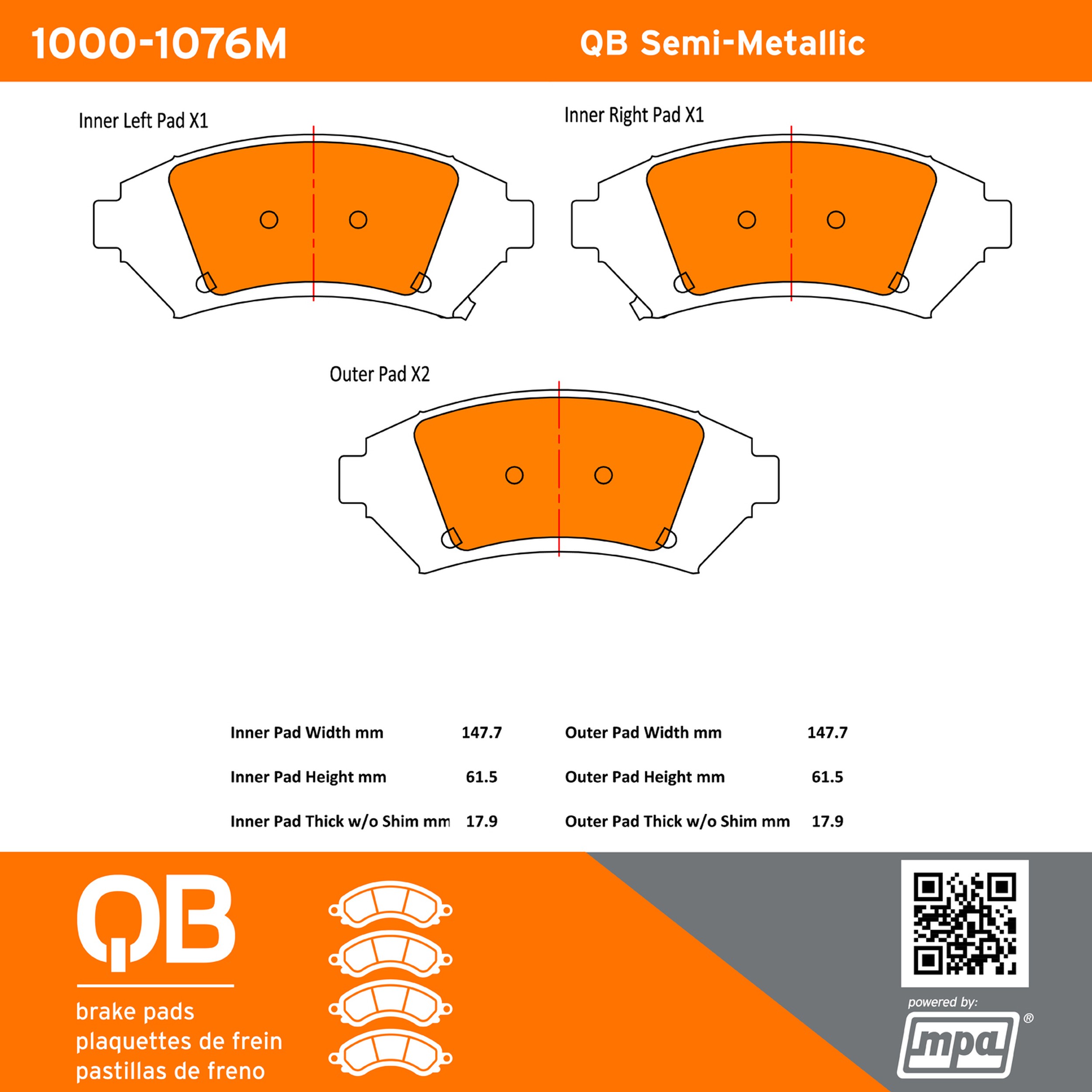 - QB Brake pads deliver like-new stopping power with minimal brake dust and noise.