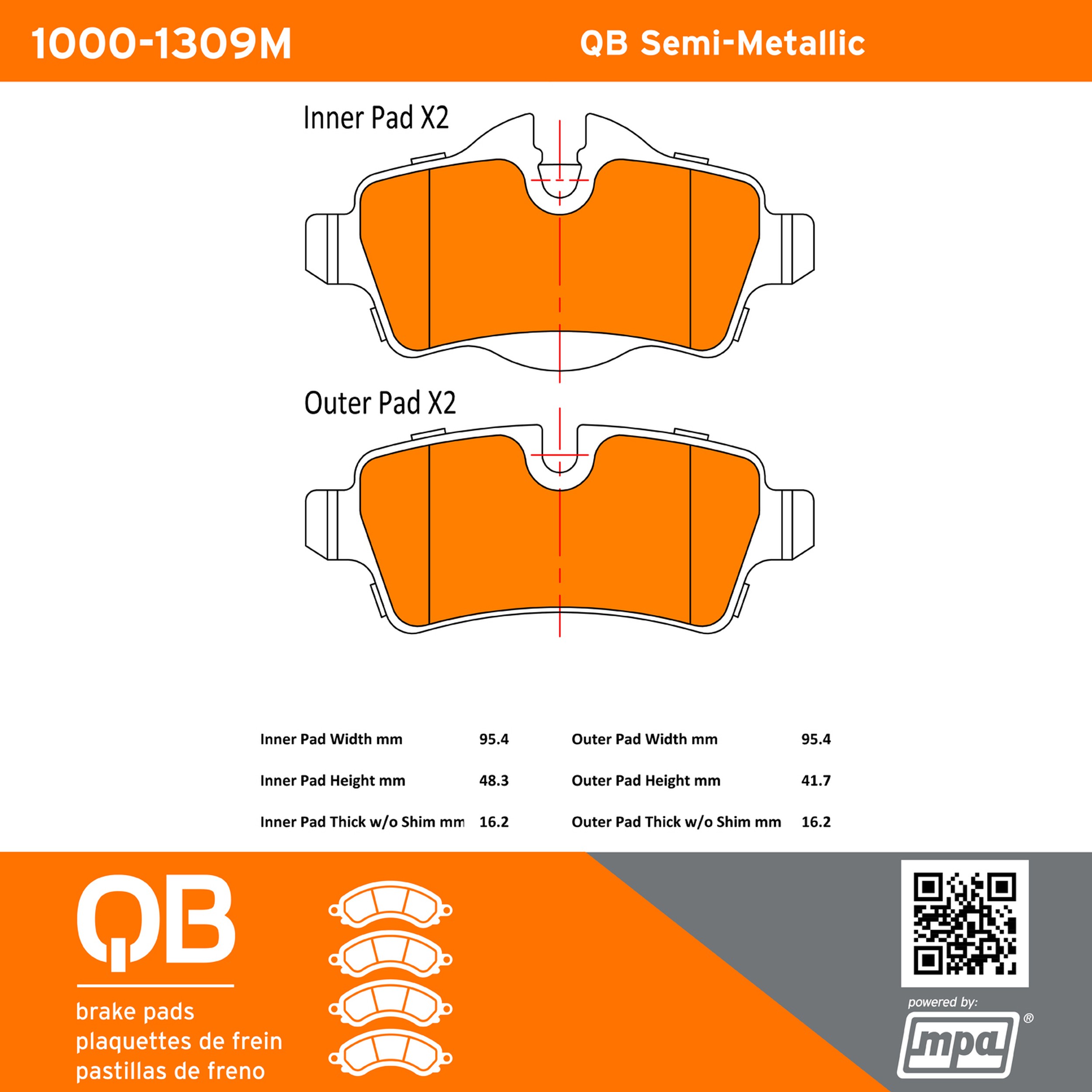 - QB Semi-Metallic Brake Pads