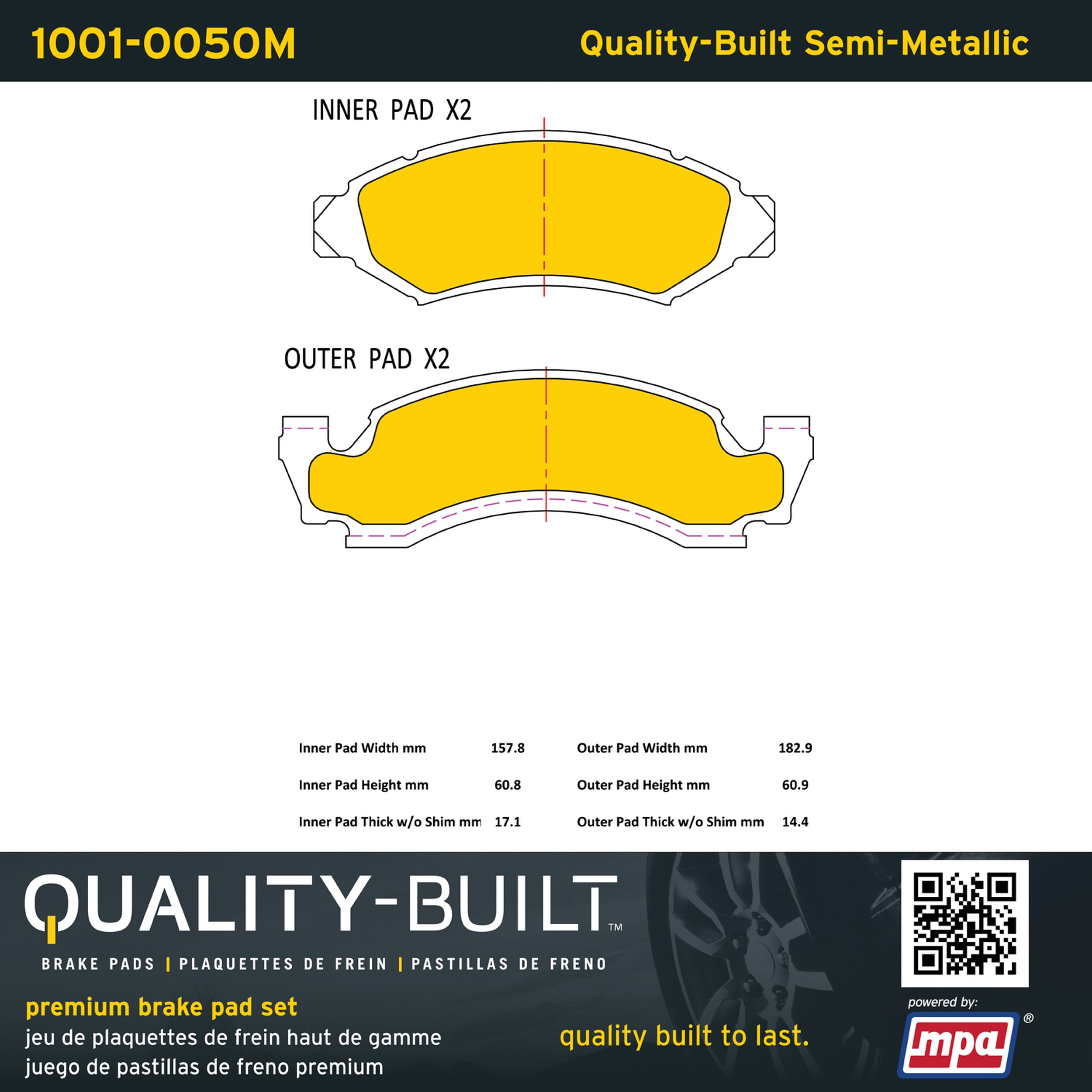 - Quality-Built Premium Brake Pads provide optimized stopping power in all conditions. Application-specific pad formulas remove the guesswork from pad selection by providing friction compounds engineered to restore like-new stopping power for every vehicle. 2025 compliant, copper-free friction formulas deliver dependable performance across a wide thermal range with low brake dust and zero noise.