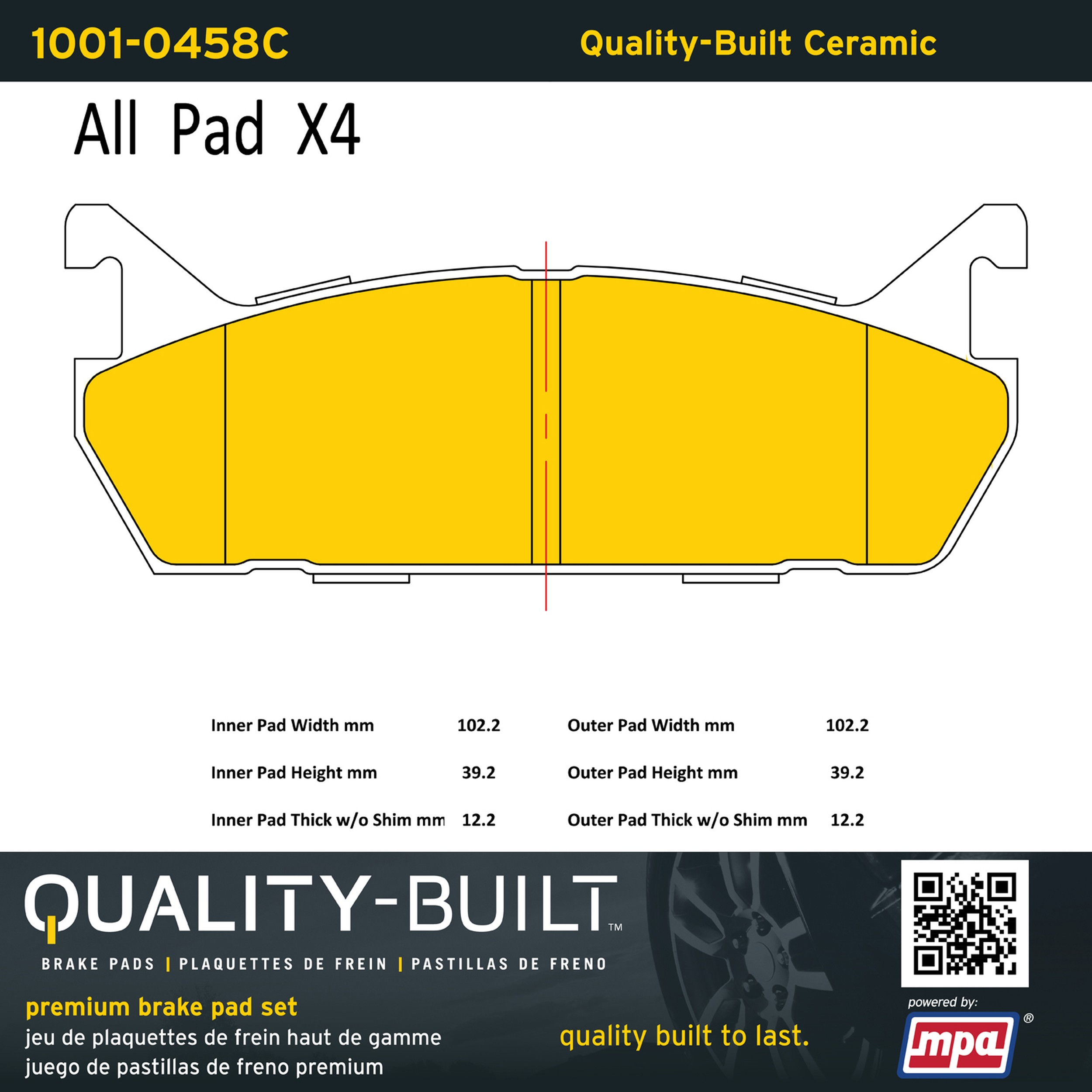 - Quality-Built Premium Brake Pads provide optimized stopping power in all conditions. Application-specific pad formulas remove the guesswork from pad selection by providing friction compounds engineered to restore like-new stopping power for every vehicle. 2025 compliant, copper-free friction formulas deliver dependable performance across a wide thermal range with low brake dust and zero noise.