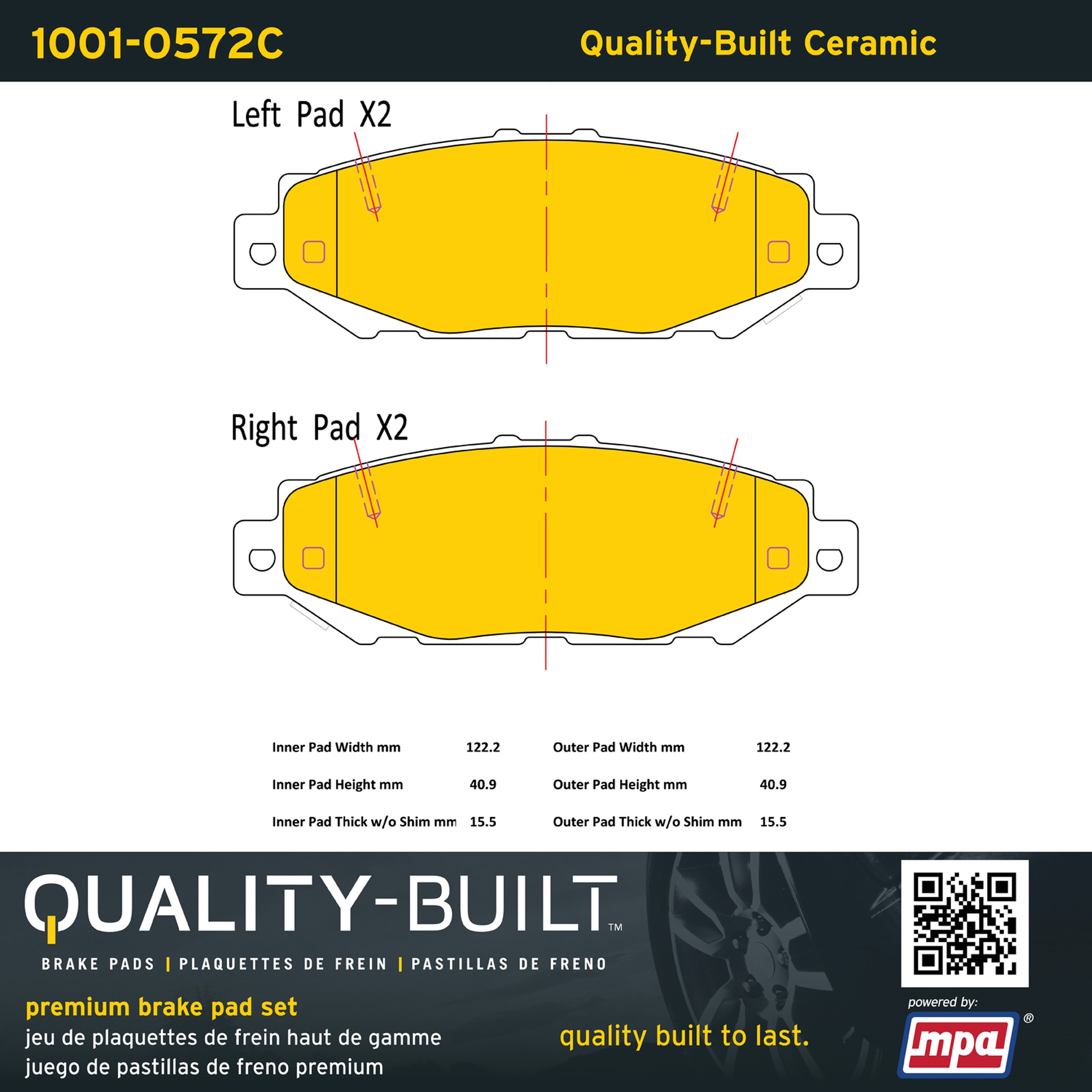 - Quality-Built Premium Brake Pads provide optimized stopping power in all conditions. Application-specific pad formulas remove the guesswork from pad selection by providing friction compounds engineered to restore like-new stopping power for every vehicle. 2025 compliant, copper-free friction formulas deliver dependable performance across a wide thermal range with low brake dust and zero noise.