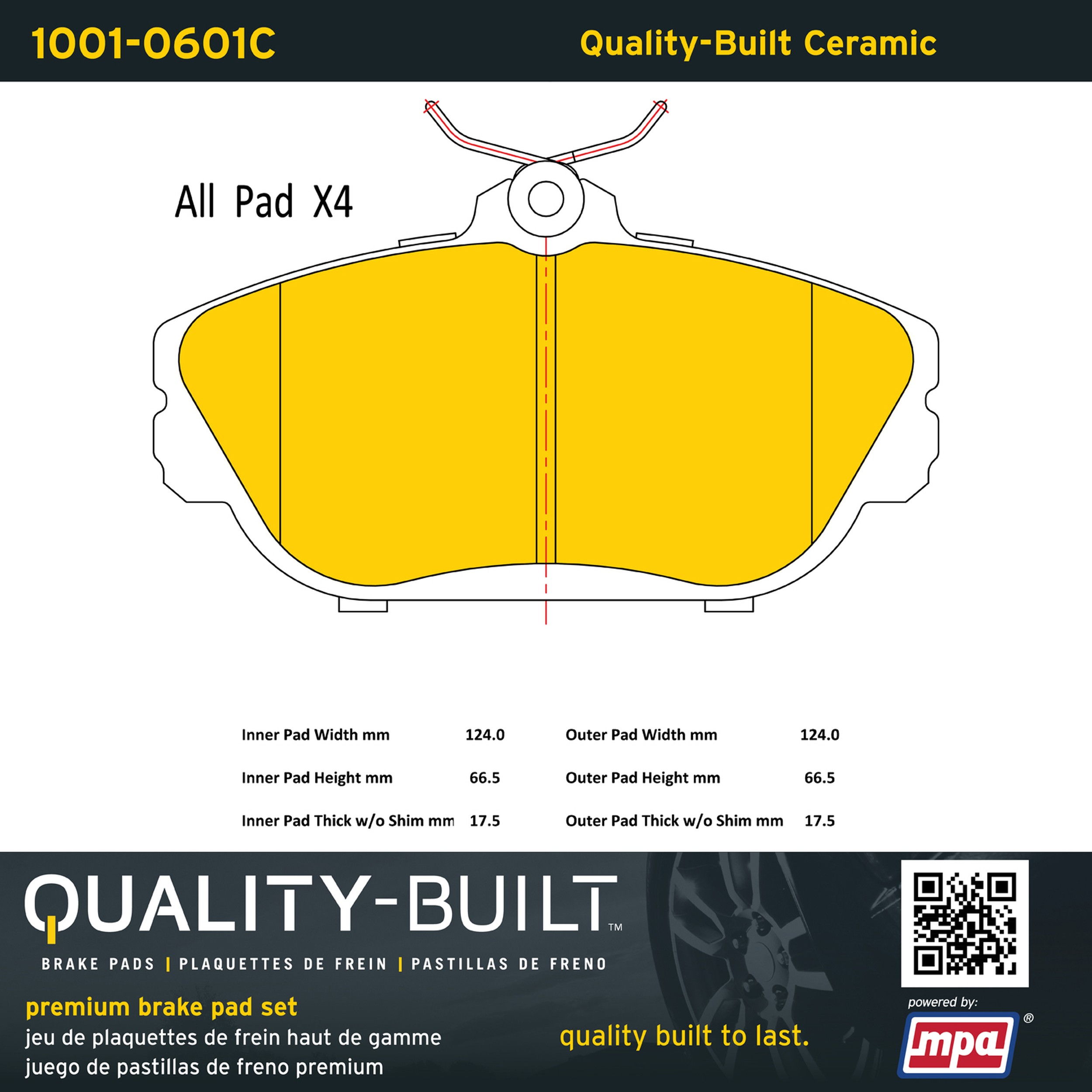 - Quality-Built Premium Brake Pads provide optimized stopping power in all conditions. Application-specific pad formulas remove the guesswork from pad selection by providing friction compounds engineered to restore like-new stopping power for every vehicle. 2025 compliant, copper-free friction formulas deliver dependable performance across a wide thermal range with low brake dust and zero noise.