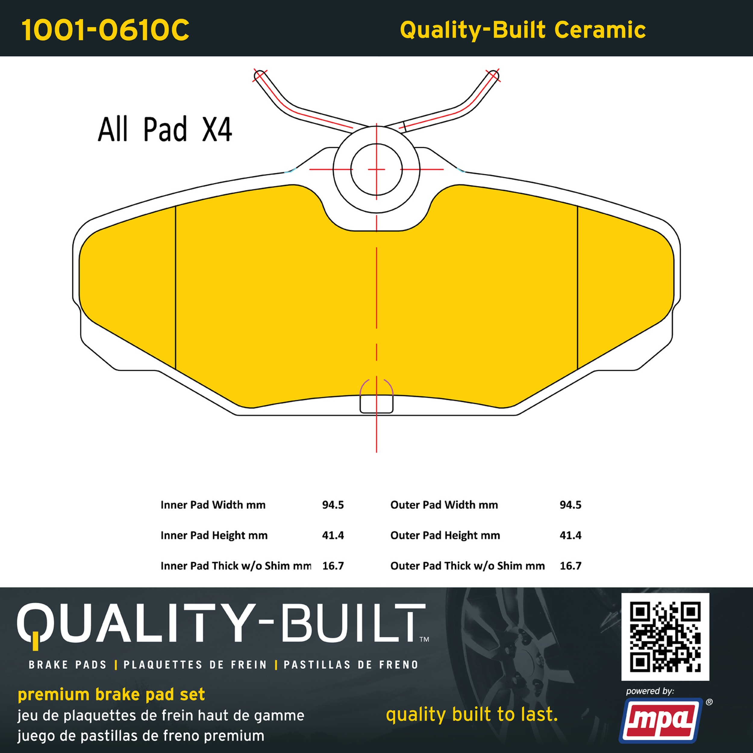- Quality-Built Premium Ceramic Brake Pads w/ Hardware