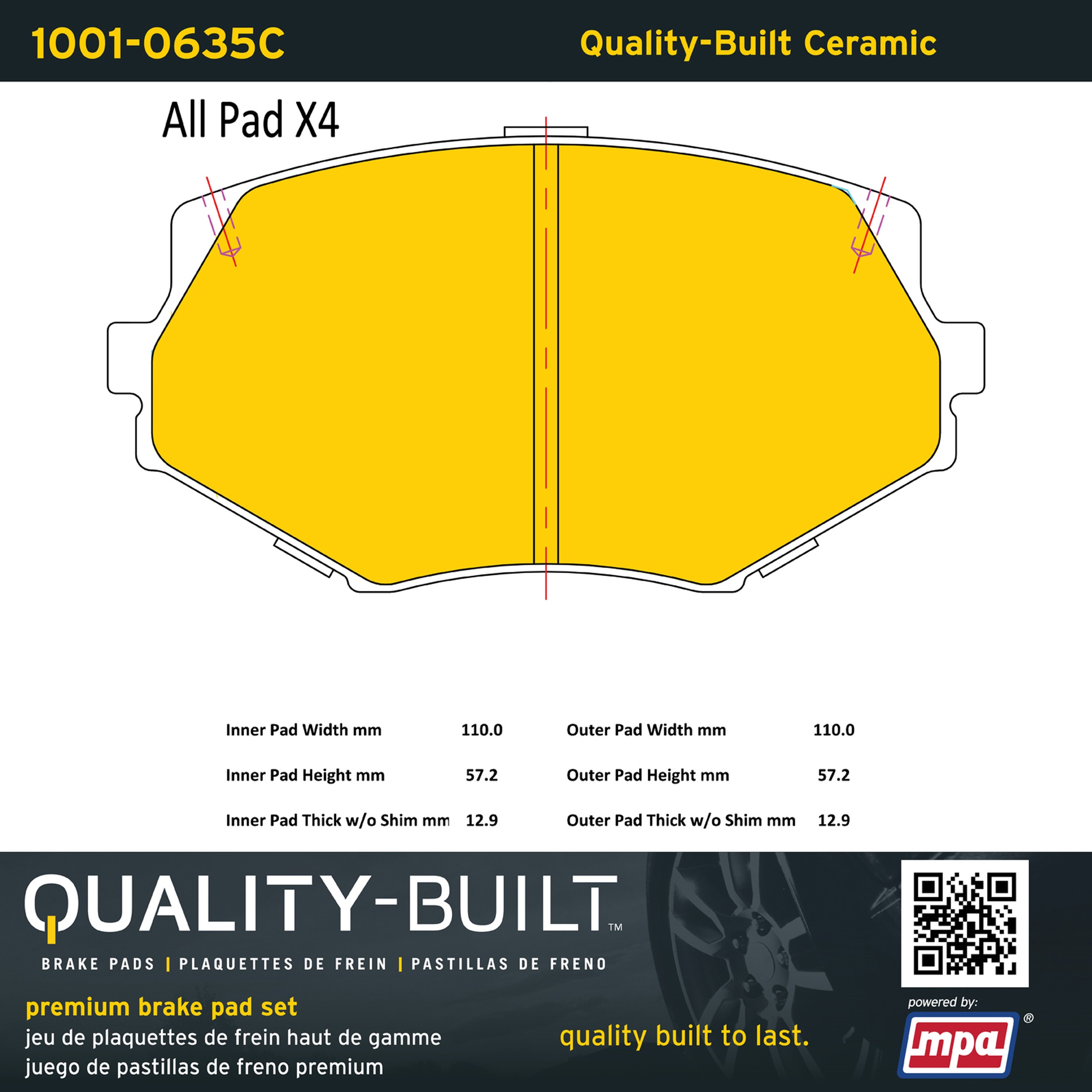 - Quality-Built Premium Brake Pads provide optimized stopping power in all conditions. Application-specific pad formulas remove the guesswork from pad selection by providing friction compounds engineered to restore like-new stopping power for every vehicle. 2025 compliant, copper-free friction formulas deliver dependable performance across a wide thermal range with low brake dust and zero noise.
