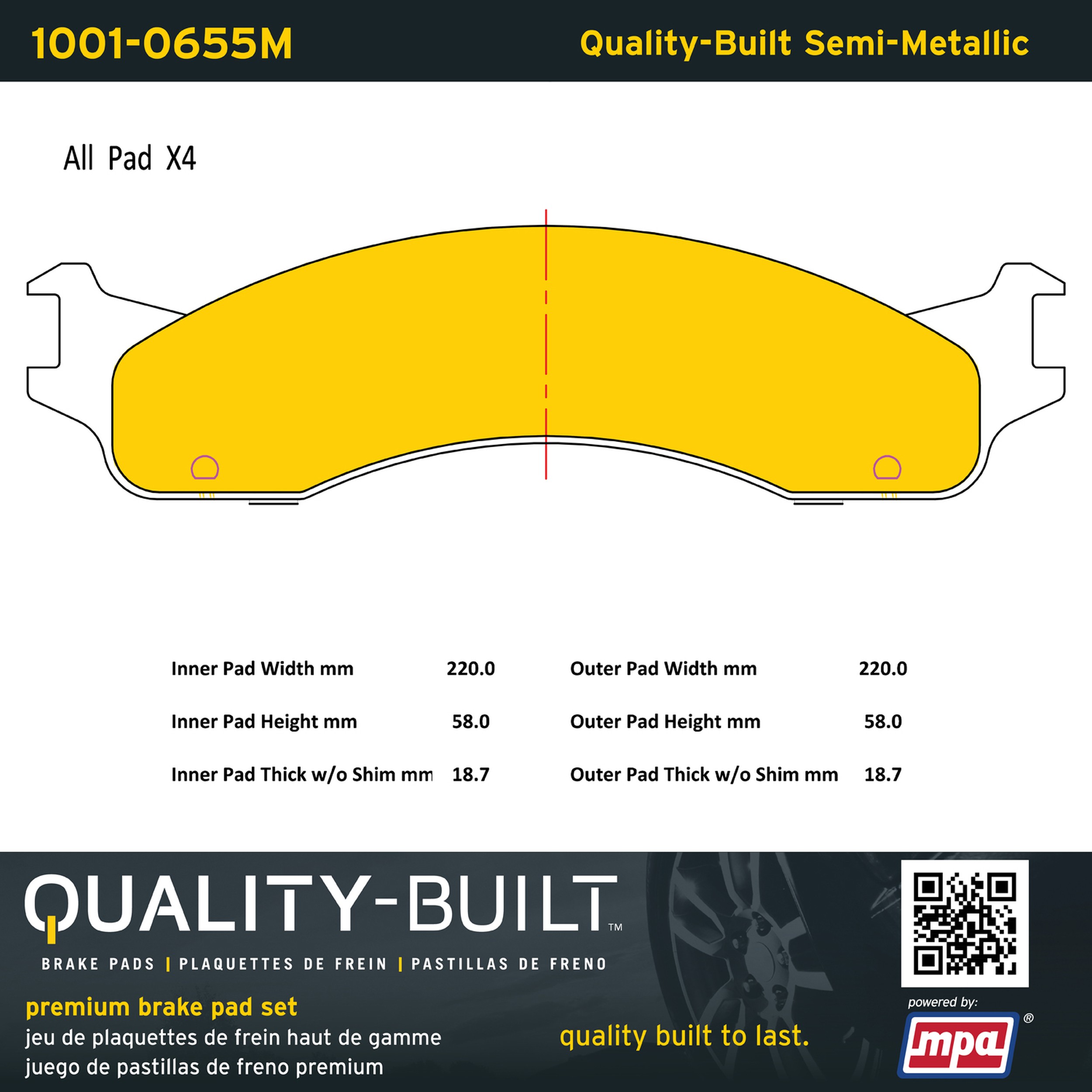 - Quality-Built Premium Brake Pads provide optimized stopping power in all conditions. Application-specific pad formulas remove the guesswork from pad selection by providing friction compounds engineered to restore like-new stopping power for every vehicle. 2025 compliant, copper-free friction formulas deliver dependable performance across a wide thermal range with low brake dust and zero noise.