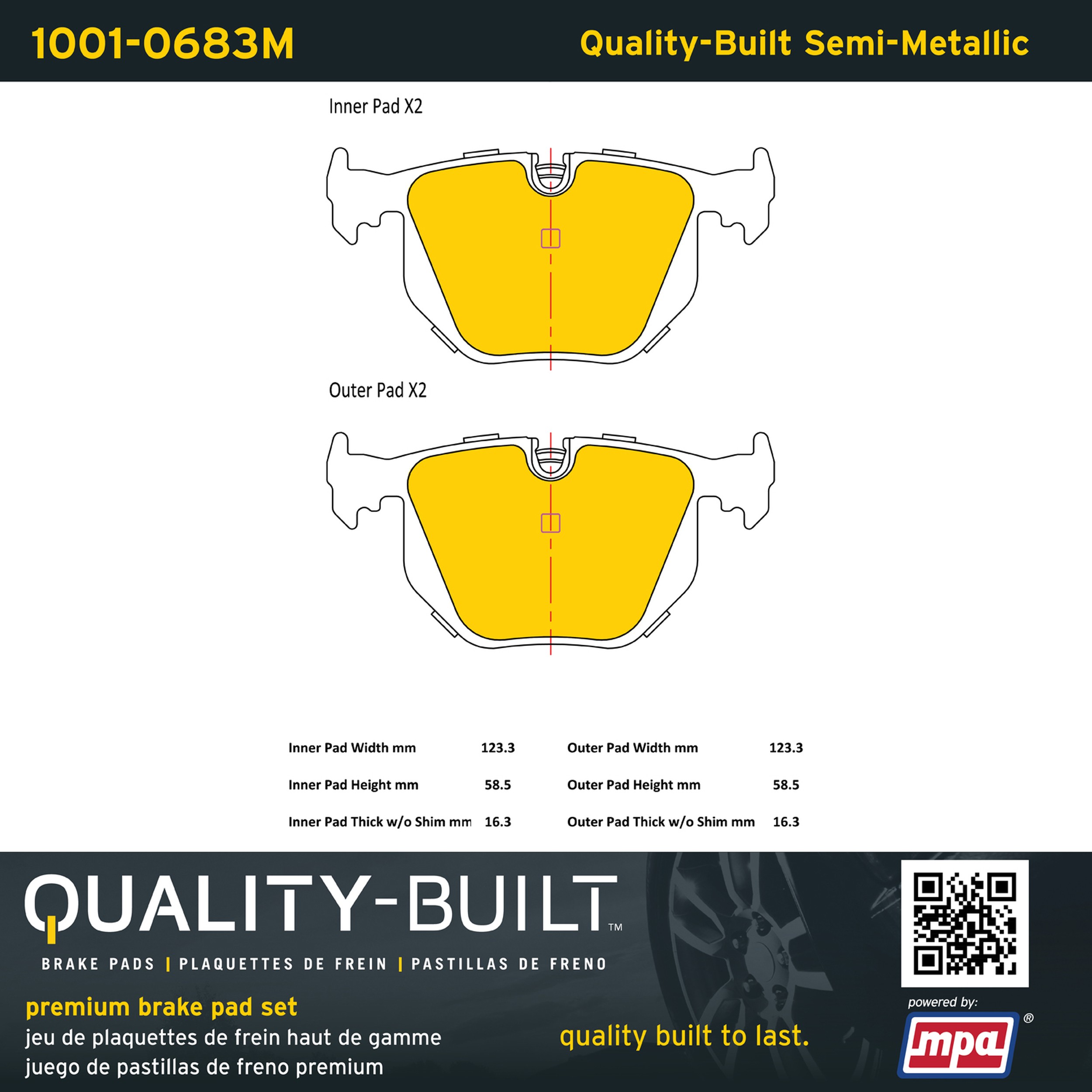 - Quality-Built Premium Brake Pads provide optimized stopping power in all conditions. Application-specific pad formulas remove the guesswork from pad selection by providing friction compounds engineered to restore like-new stopping power for every vehicle. 2025 compliant, copper-free friction formulas deliver dependable performance across a wide thermal range with low brake dust and zero noise.