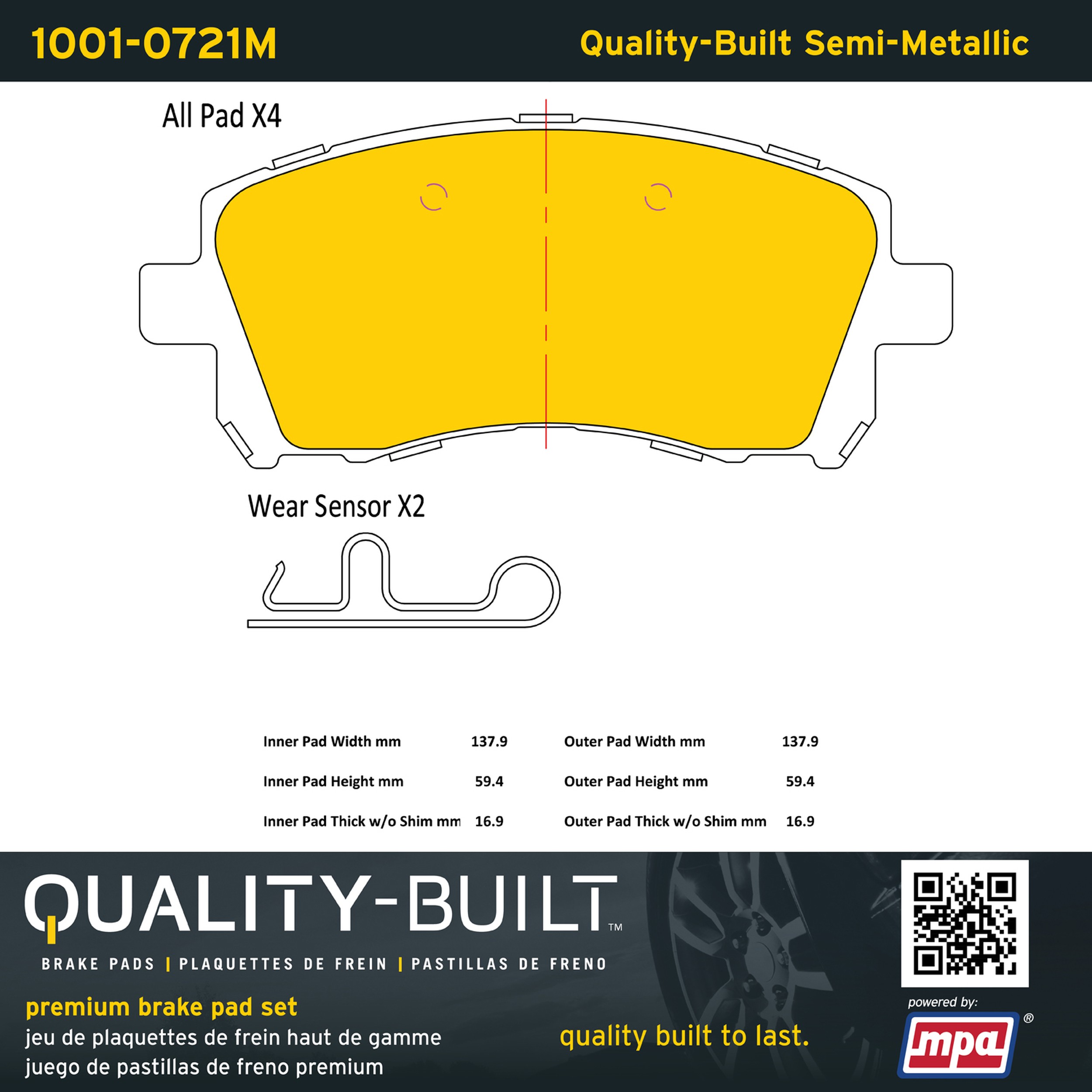 - Quality-Built Premium Brake Pads provide optimized stopping power in all conditions. Application-specific pad formulas remove the guesswork from pad selection by providing friction compounds engineered to restore like-new stopping power for every vehicle. 2025 compliant, copper-free friction formulas deliver dependable performance across a wide thermal range with low brake dust and zero noise.