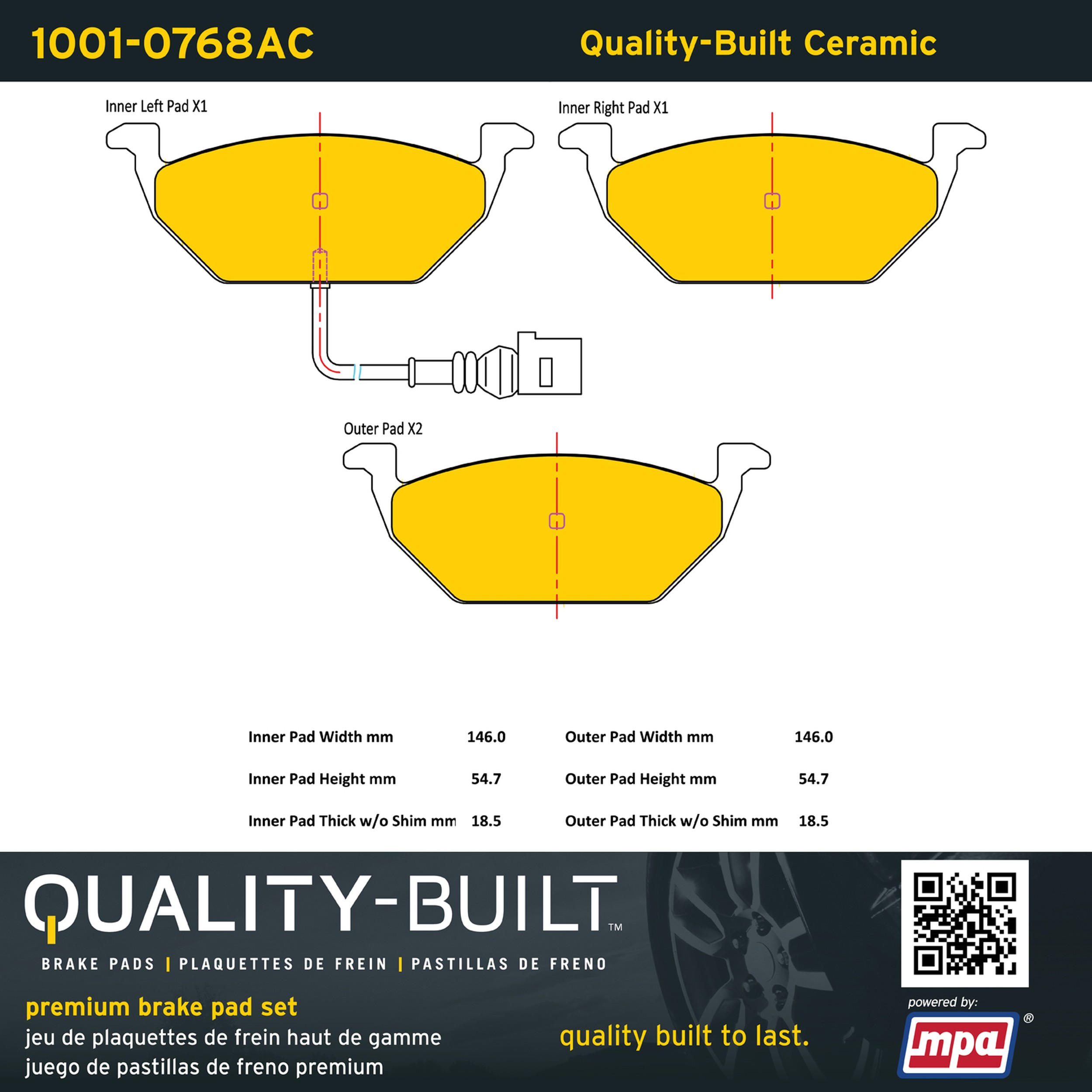 - Quality-Built Premium Brake Pads provide optimized stopping power in all conditions. Application-specific pad formulas remove the guesswork from pad selection by providing friction compounds engineered to restore like-new stopping power for every vehicle. 2025 compliant, copper-free friction formulas deliver dependable performance across a wide thermal range with low brake dust and zero noise.