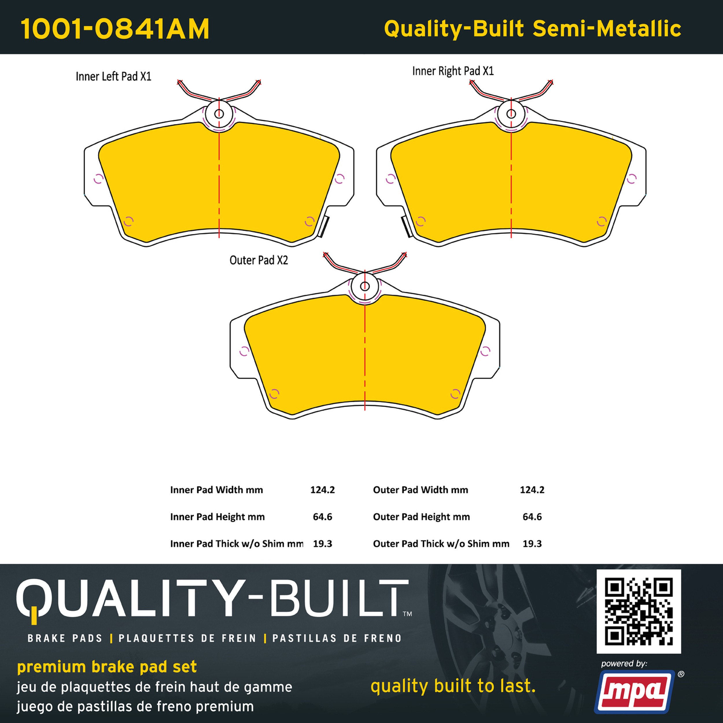 - Quality-Built Premium Brake Pads provide optimized stopping power in all conditions. Application-specific pad formulas remove the guesswork from pad selection by providing friction compounds engineered to restore like-new stopping power for every vehicle. 2025 compliant, copper-free friction formulas deliver dependable performance across a wide thermal range with low brake dust and zero noise.