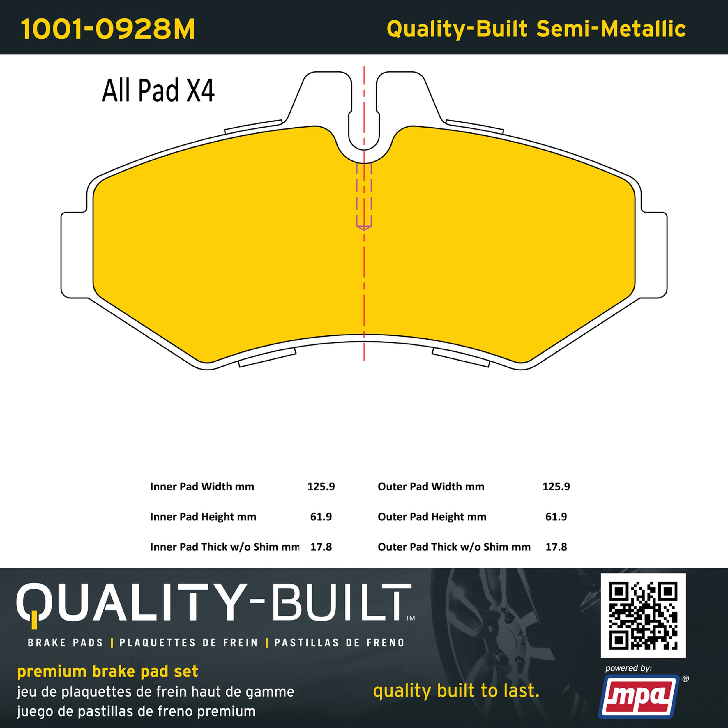 - Quality-Built Premium Brake Pads provide optimized stopping power in all conditions. Application-specific pad formulas remove the guesswork from pad selection by providing friction compounds engineered to restore like-new stopping power for every vehicle. 2025 compliant, copper-free friction formulas deliver dependable performance across a wide thermal range with low brake dust and zero noise.