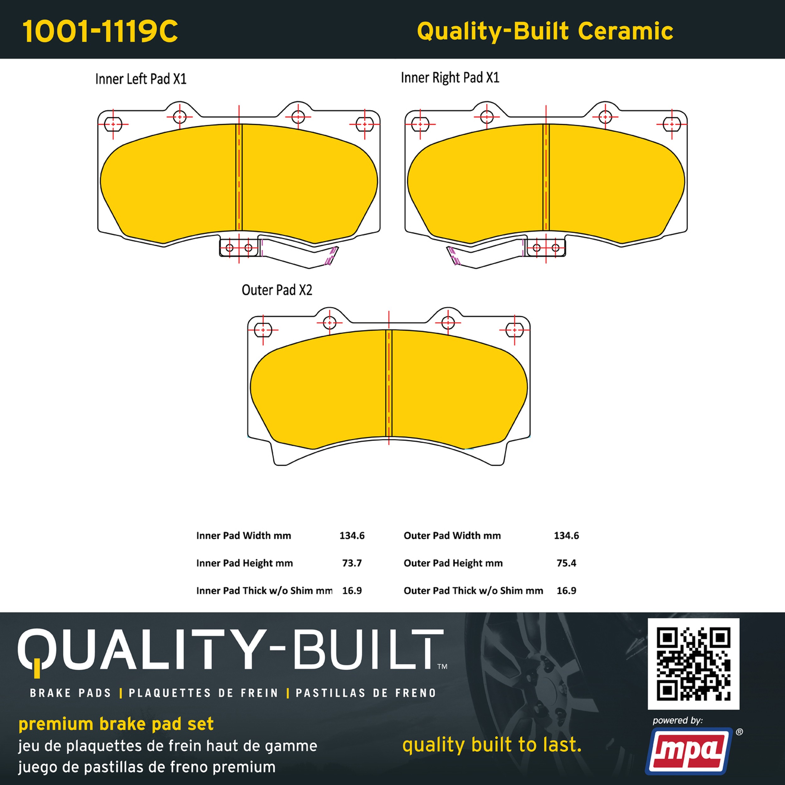 - Quality-Built Premium Brake Pads provide optimized stopping power in all conditions. Application-specific pad formulas remove the guesswork from pad selection by providing friction compounds engineered to restore like-new stopping power for every vehicle. 2025 compliant, copper-free friction formulas deliver dependable performance across a wide thermal range with low brake dust and zero noise.