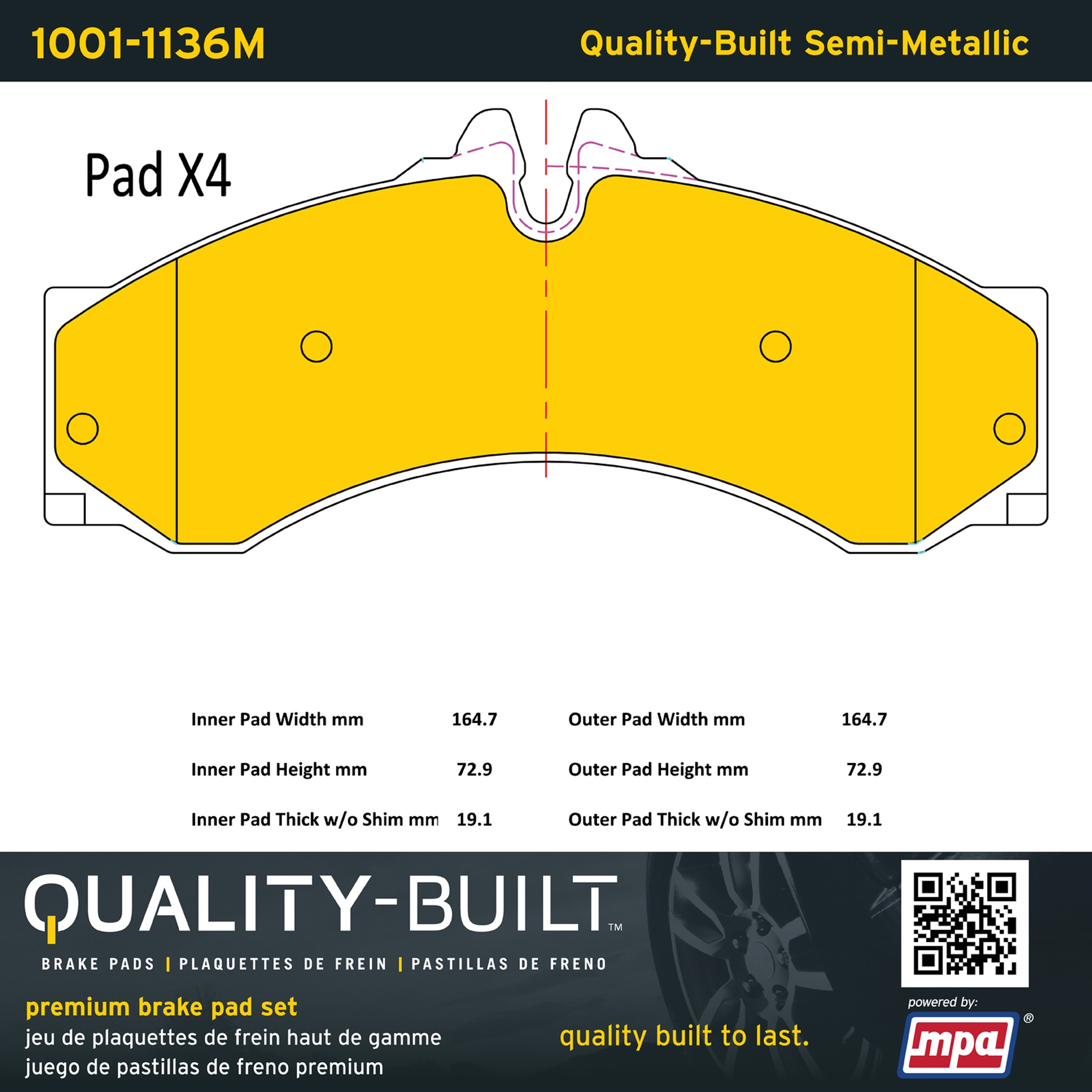 - Quality-Built Premium Semi-Metallic Brake Pads