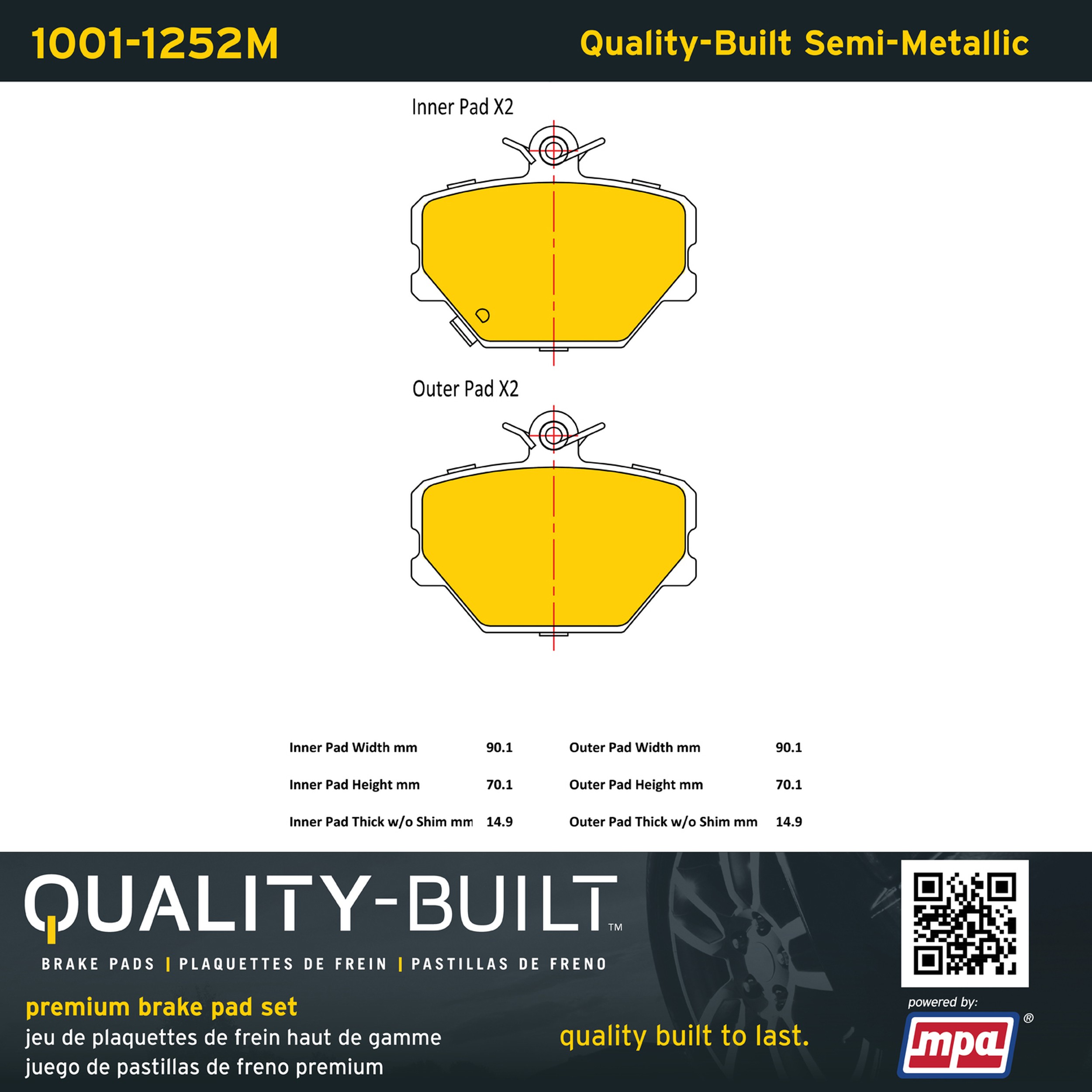- Quality-Built Premium Semi-Metallic Brake Pads