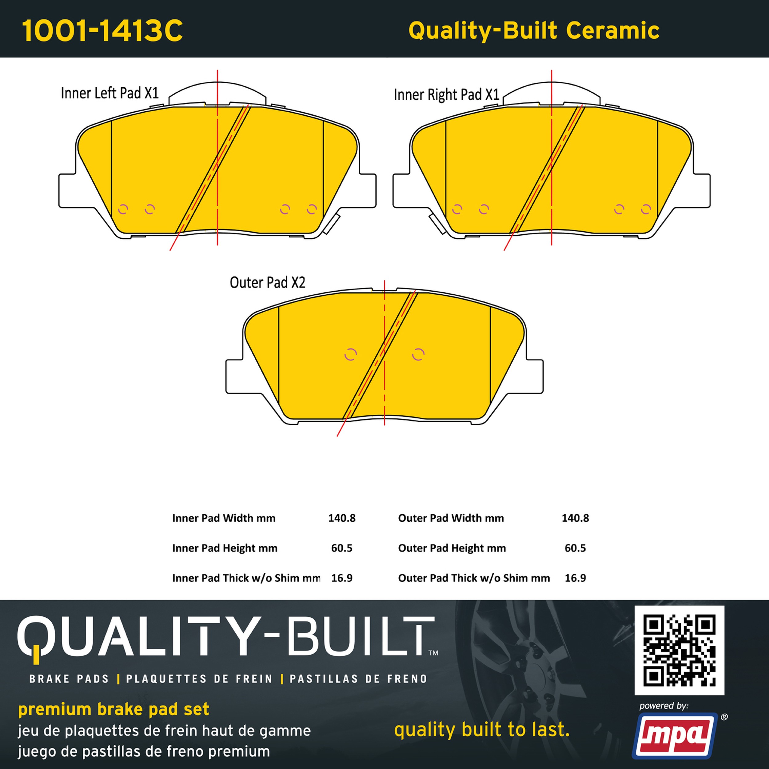 - Quality-Built Premium Brake Pads provide optimized stopping power in all conditions. Application-specific pad formulas remove the guesswork from pad selection by providing friction compounds engineered to restore like-new stopping power for every vehicle. 2025 compliant, copper-free friction formulas deliver dependable performance across a wide thermal range with low brake dust and zero noise.