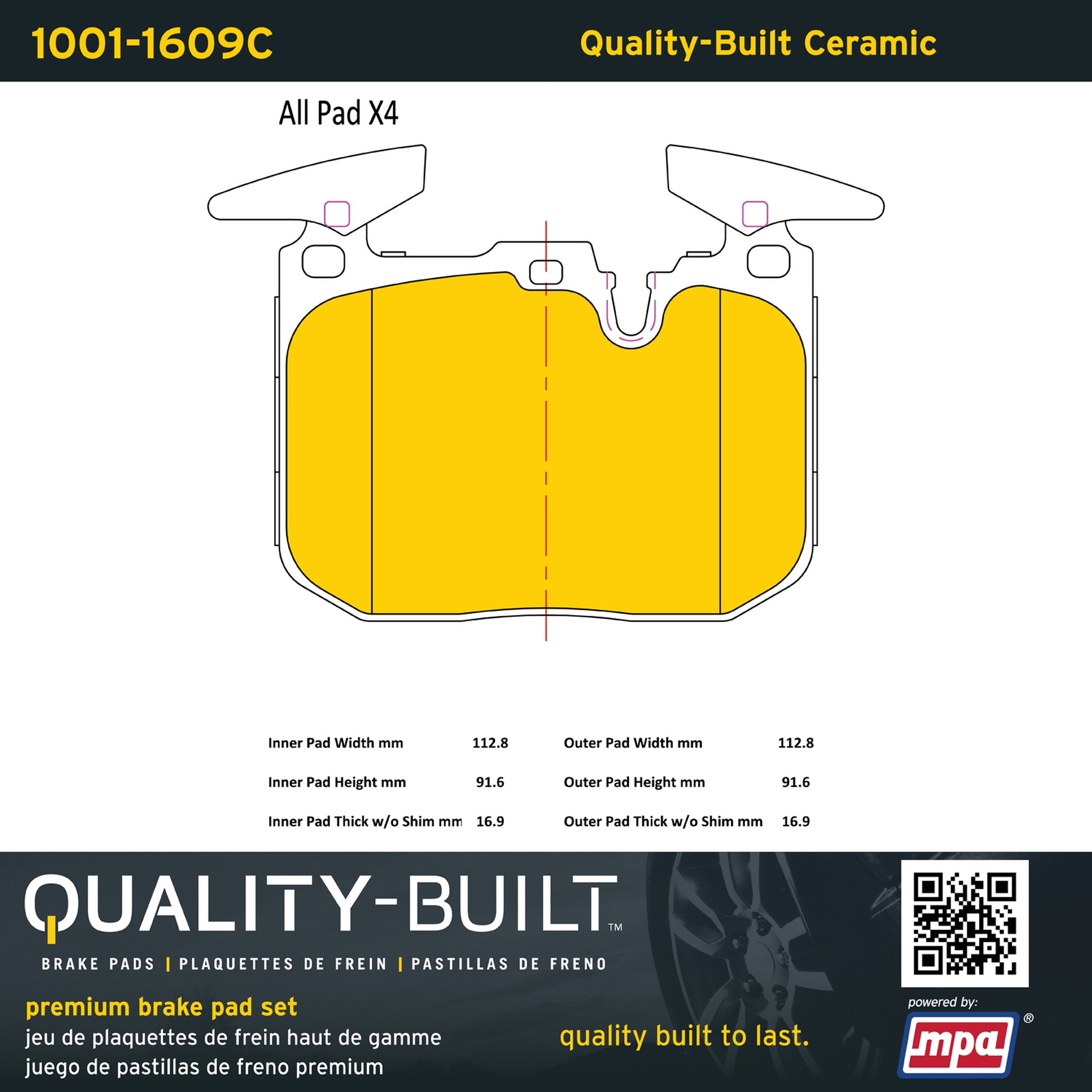 - Quality-Built Premium Brake Pads provide optimized stopping power in all conditions. Application-specific pad formulas remove the guesswork from pad selection by providing friction compounds engineered to restore like-new stopping power for every vehicle. 2025 compliant, copper-free friction formulas deliver dependable performance across a wide thermal range with low brake dust and zero noise.